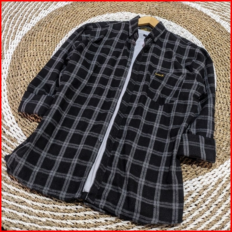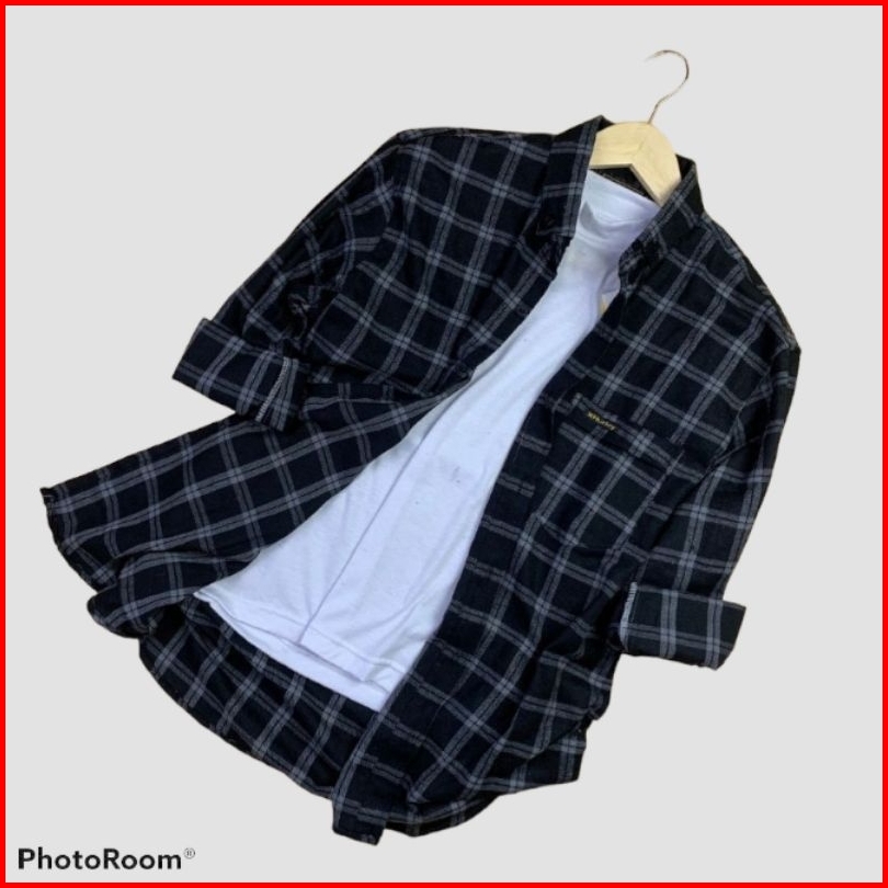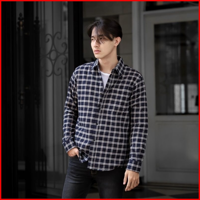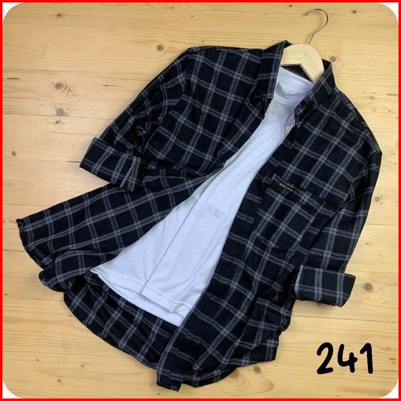 Kemeja Flanel Motif 57 Abu Kotak Kotak Lengan Panjang