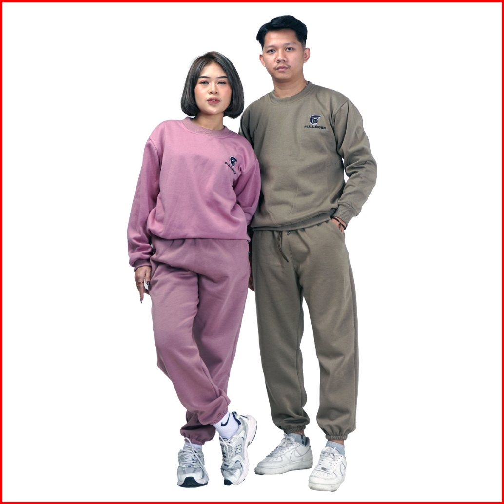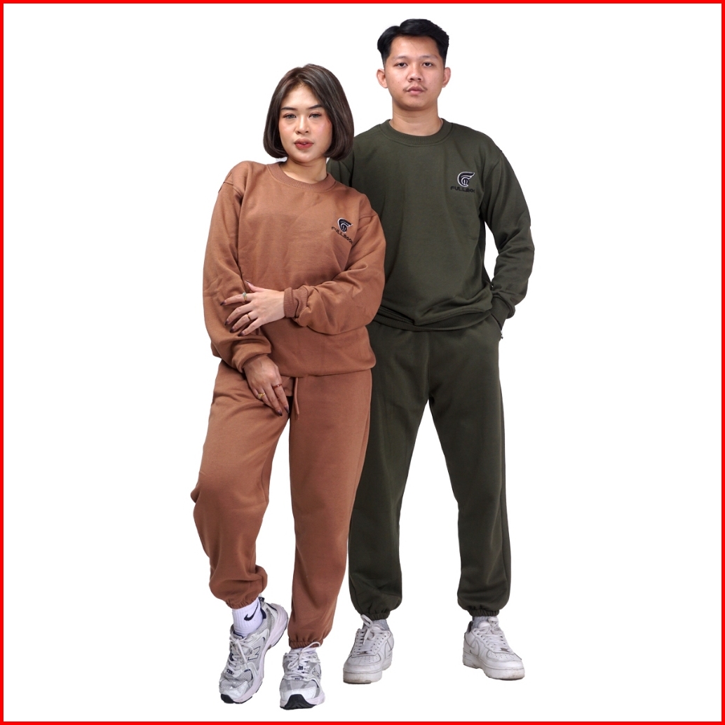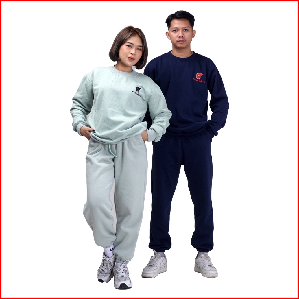 Fullmoon Satu Stel One Set Sweater Crewneck Dan Celana Panjang Training Jogger Unisex Pria Wanita