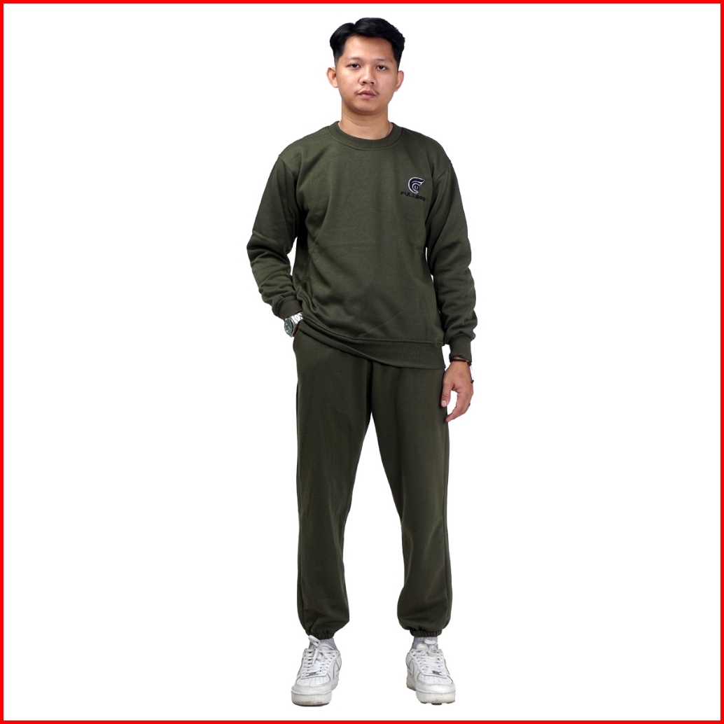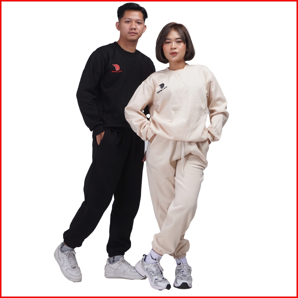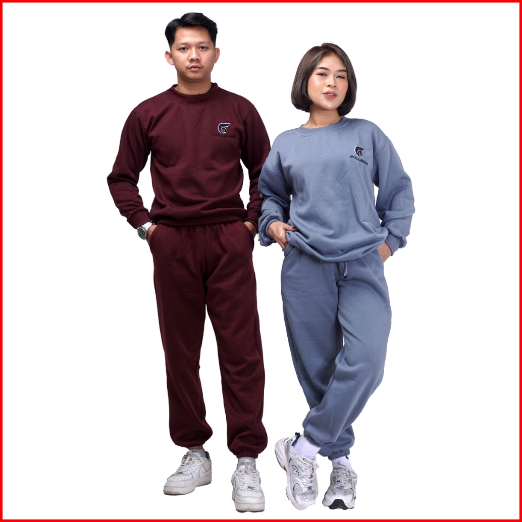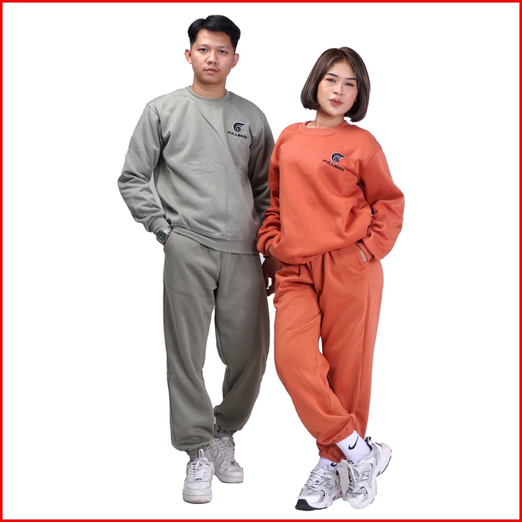 Fullmoon Satu Stel One Set Sweater Crewneck Dan Celana Panjang Training Jogger Unisex Pria Wanita
