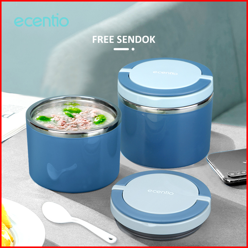 Ecentio Cangkir Sup 630ml 304-stainless Steel Tahan Panas Lunch Box Termos Makan Bubur Kotak Makan Bekal Sup Biru