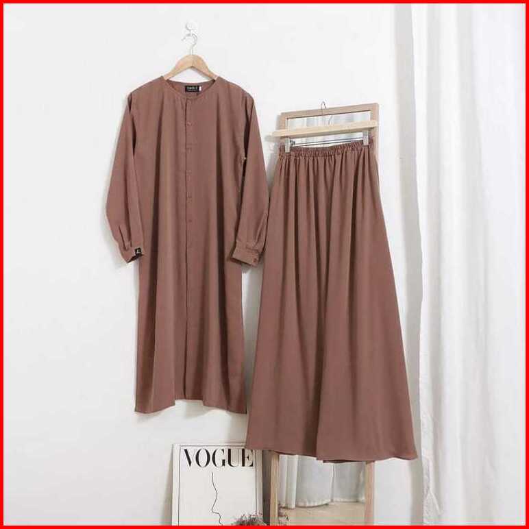 Fashion Style One Set Rok Tunik Hanum Busui Wanita Muslim Jumbo Bahan Wolfis A Terbaru