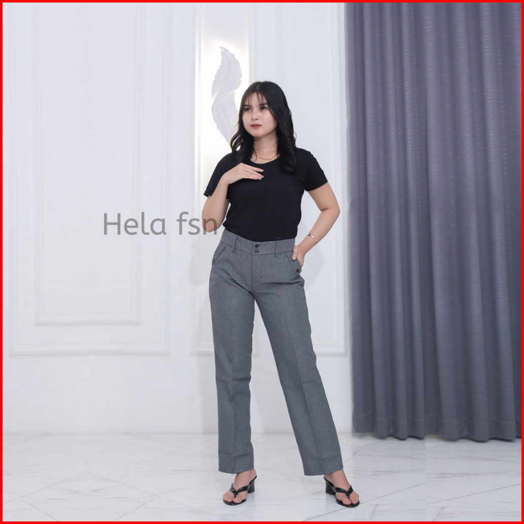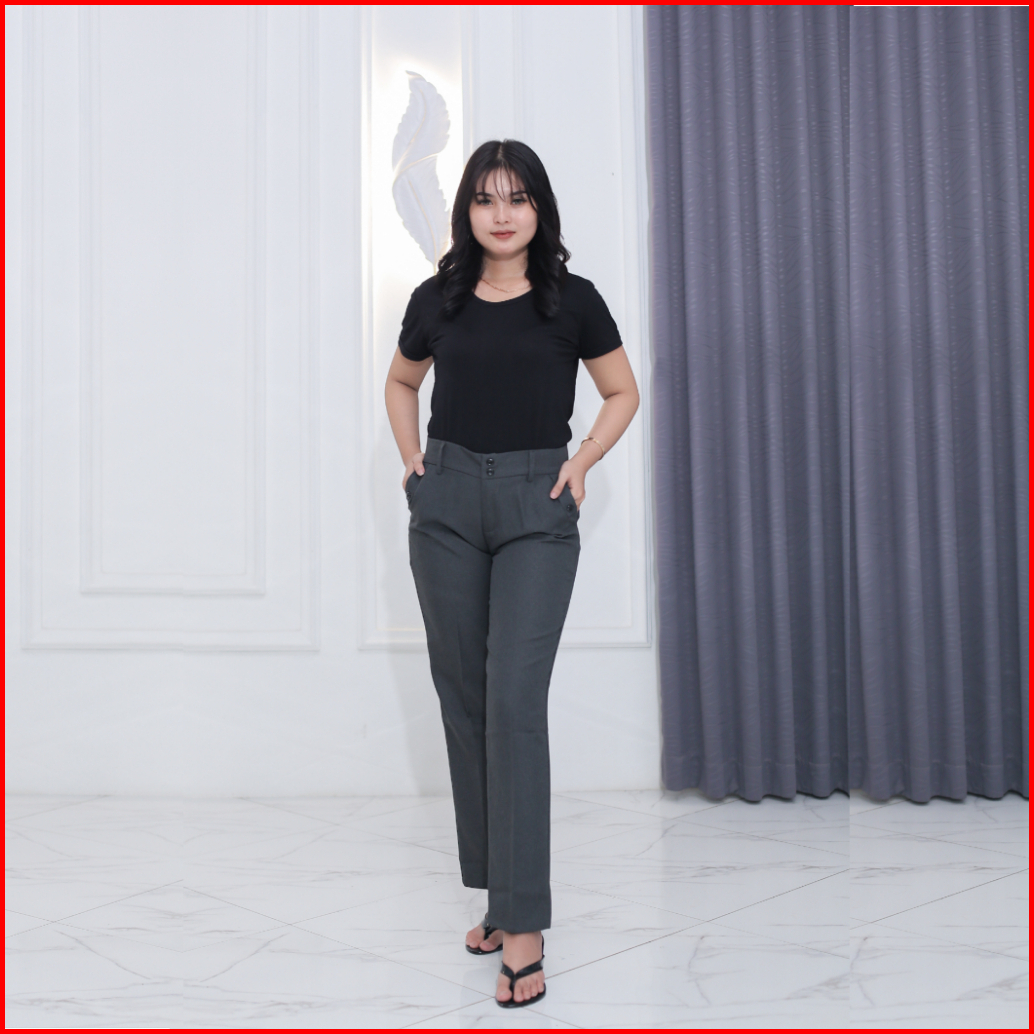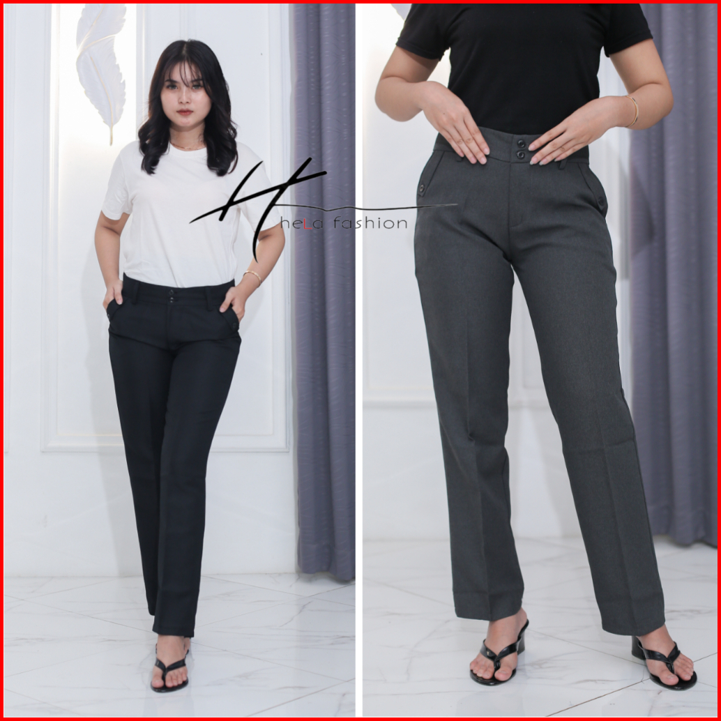 Celana Kerja Kantor Wanita Celana Wanita Jumbo Pinggang Kancing Raslating