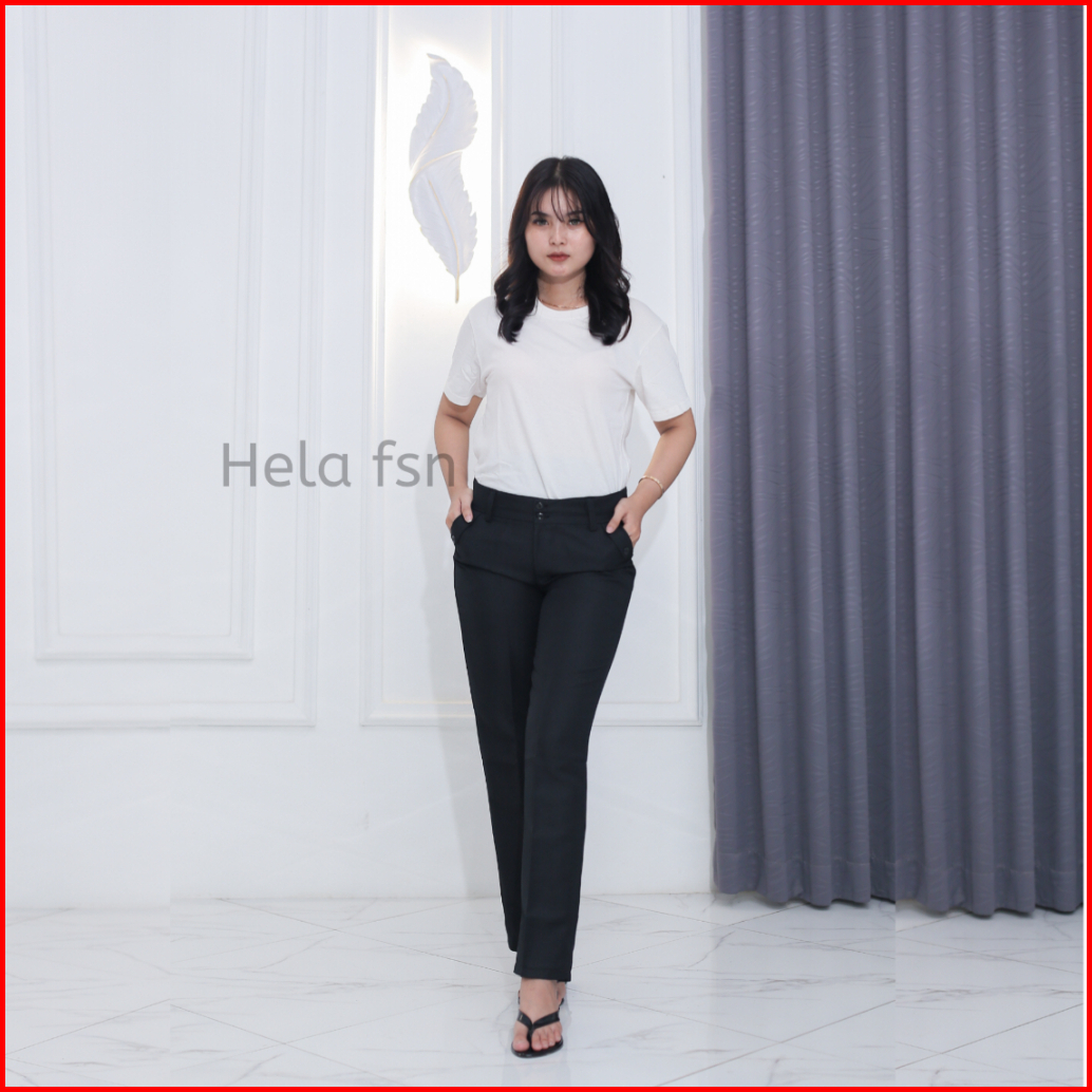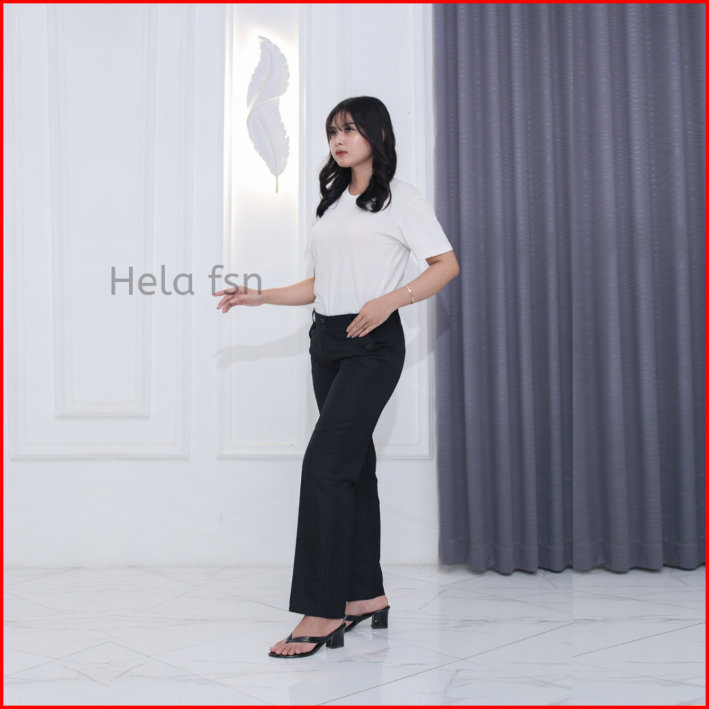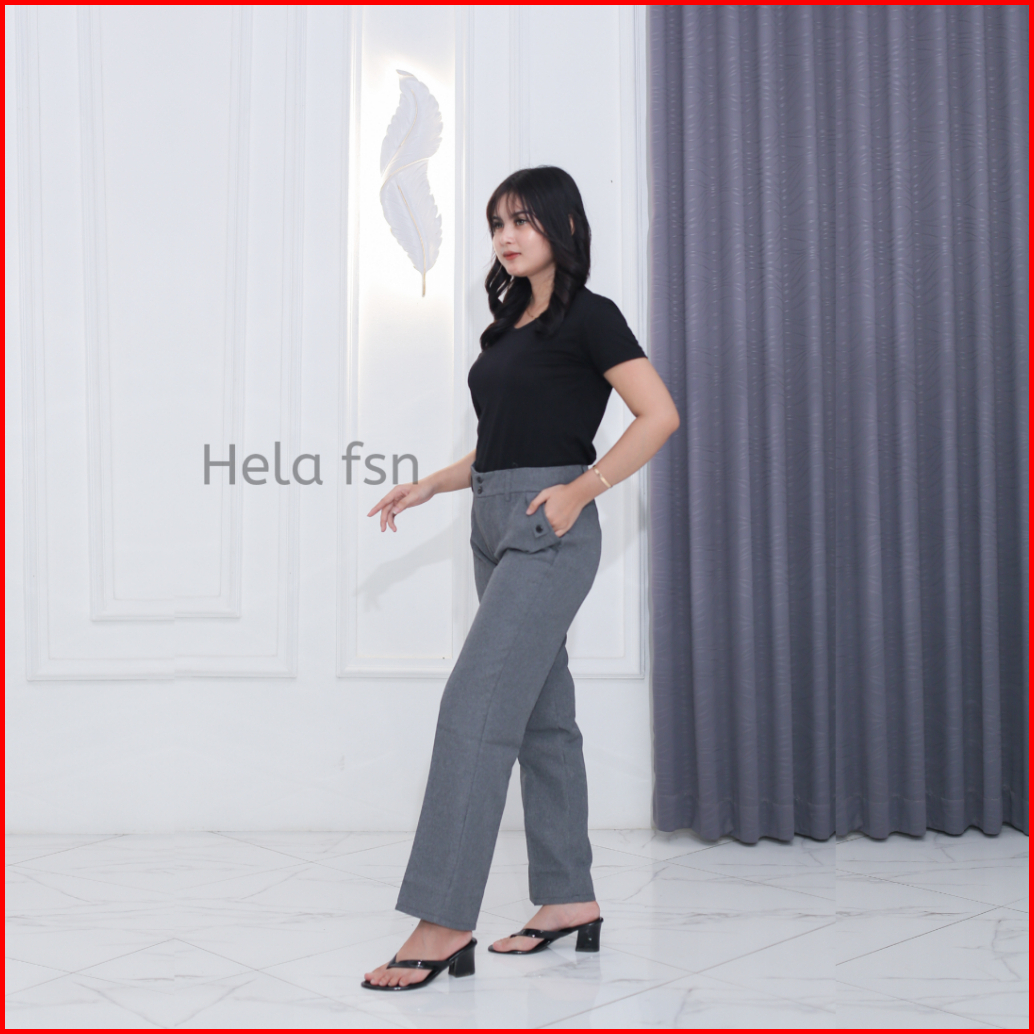Celana Kerja Kantor Wanita Celana Wanita Jumbo Pinggang Kancing Raslating