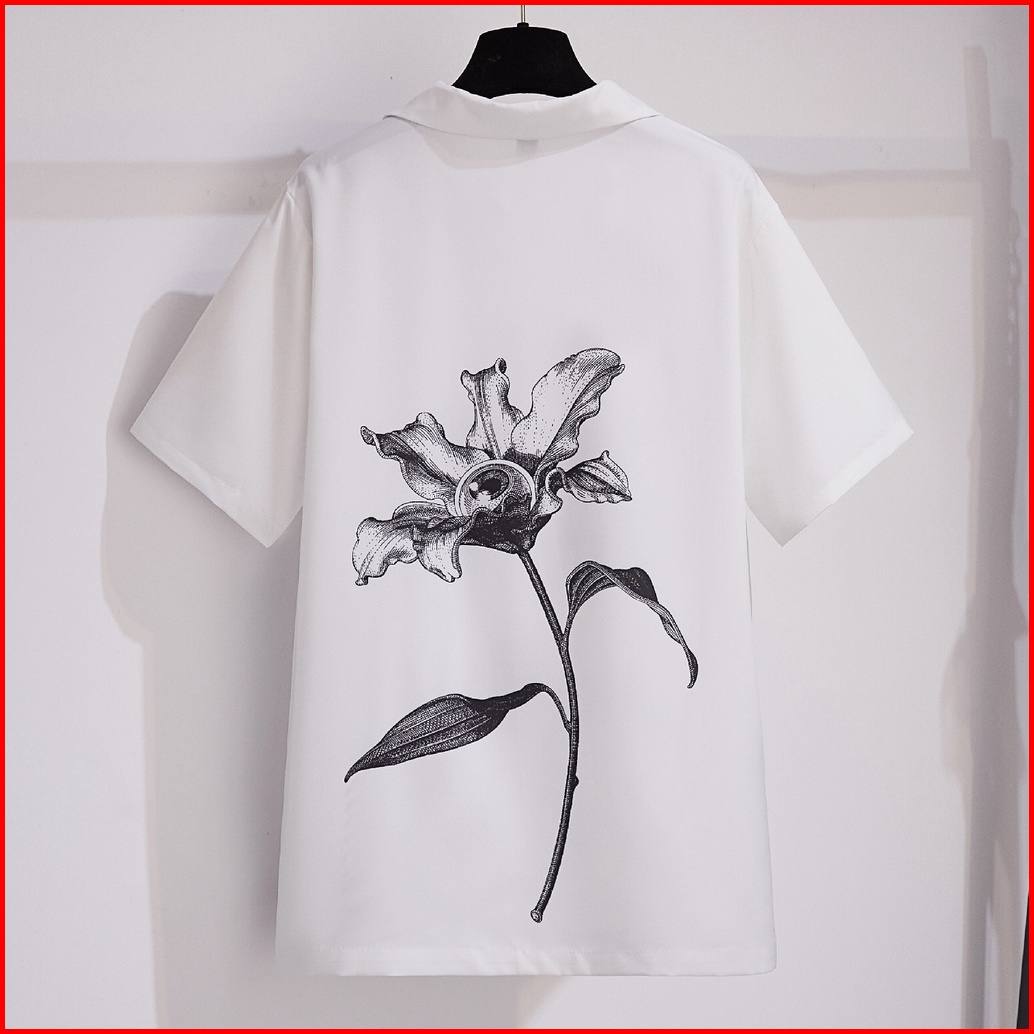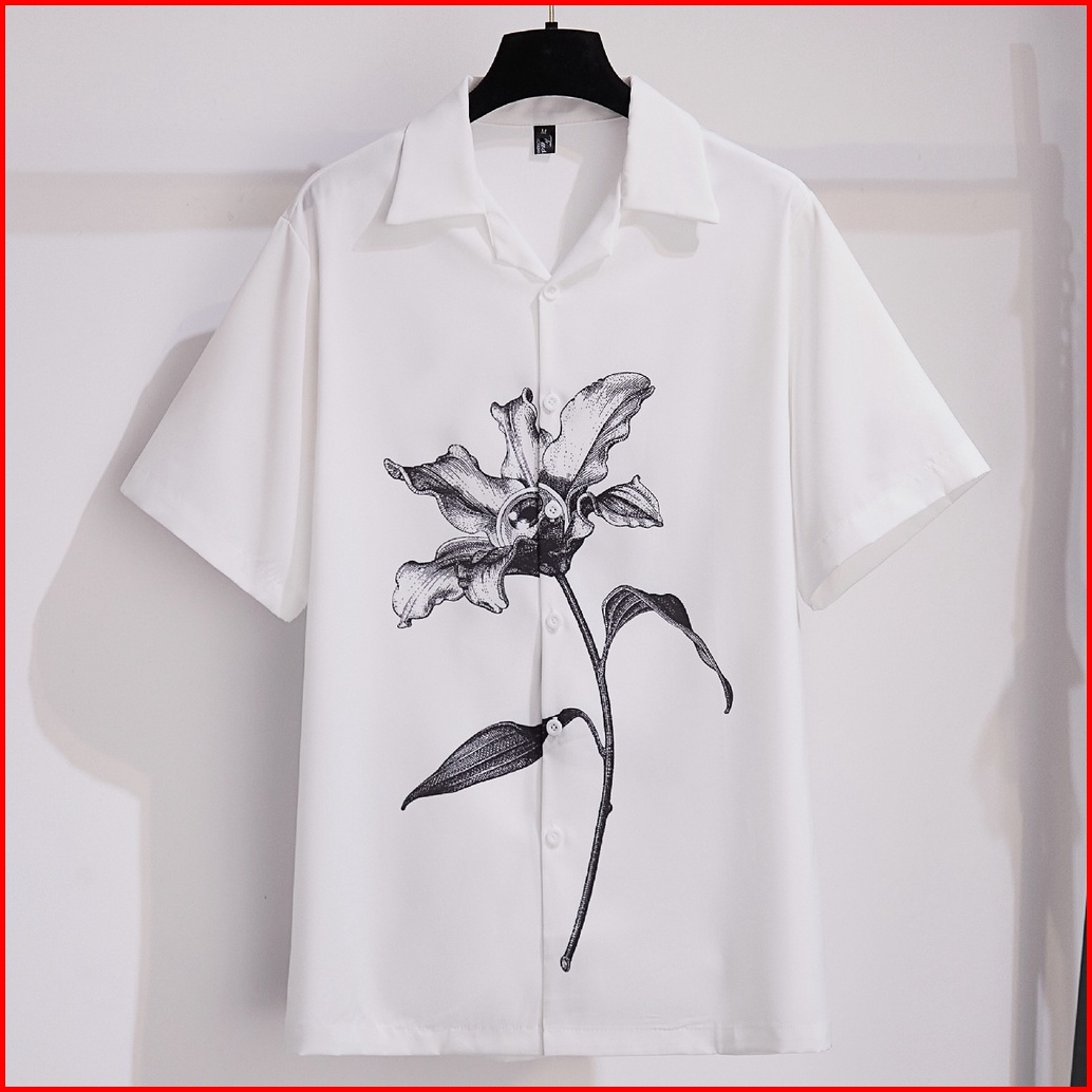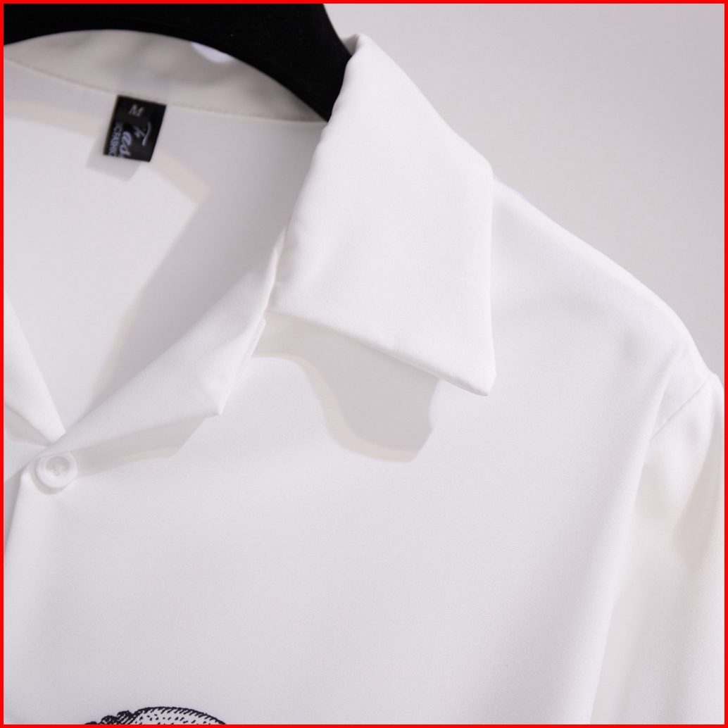 Elastic Fabric Digital Printing Fashion White Short Sleeve Men S Shirt Loose Casual Party Travel Beach Shirts