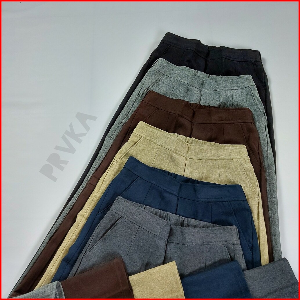 Celana Bahan Kerja Wanita Pingang Karet Belakang . Ukuran S - Xl Premium