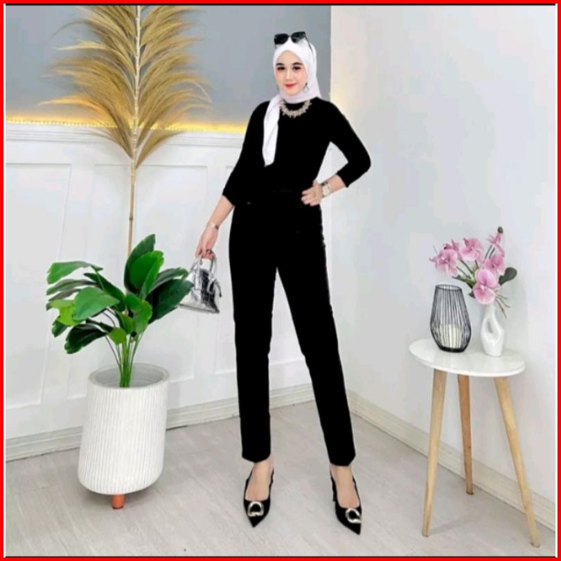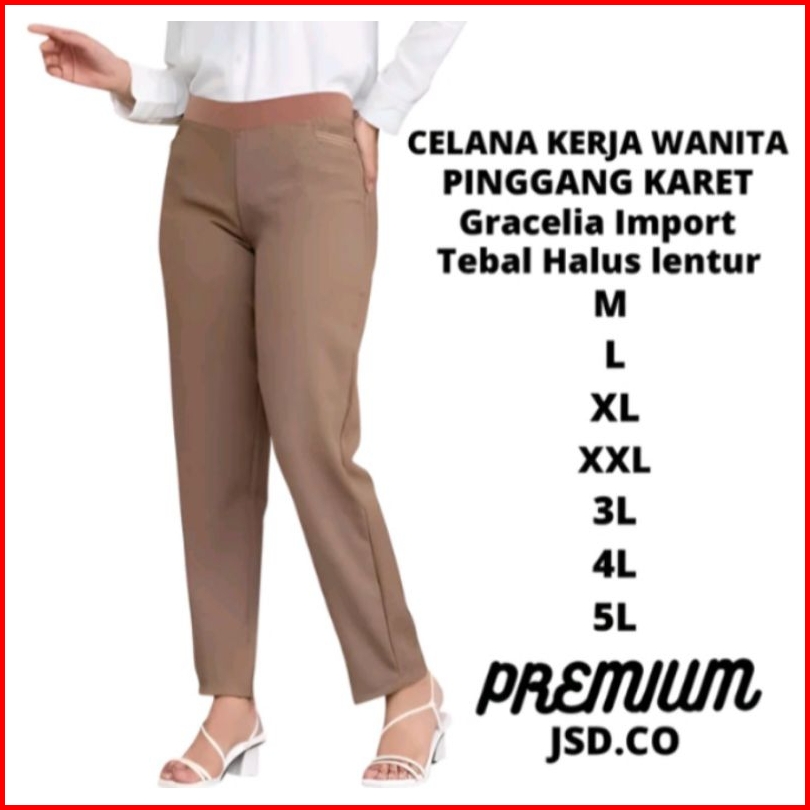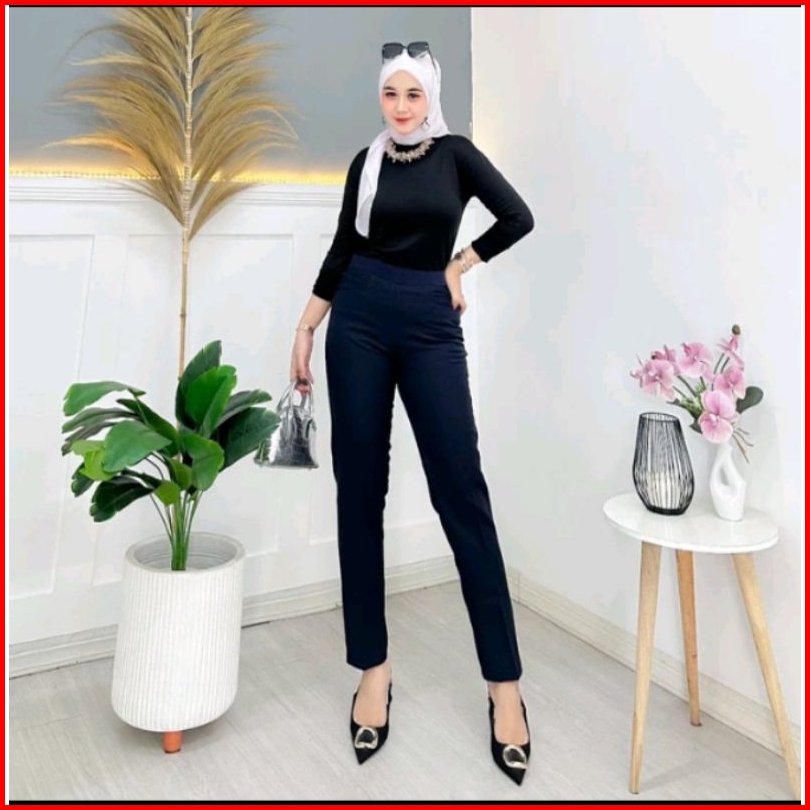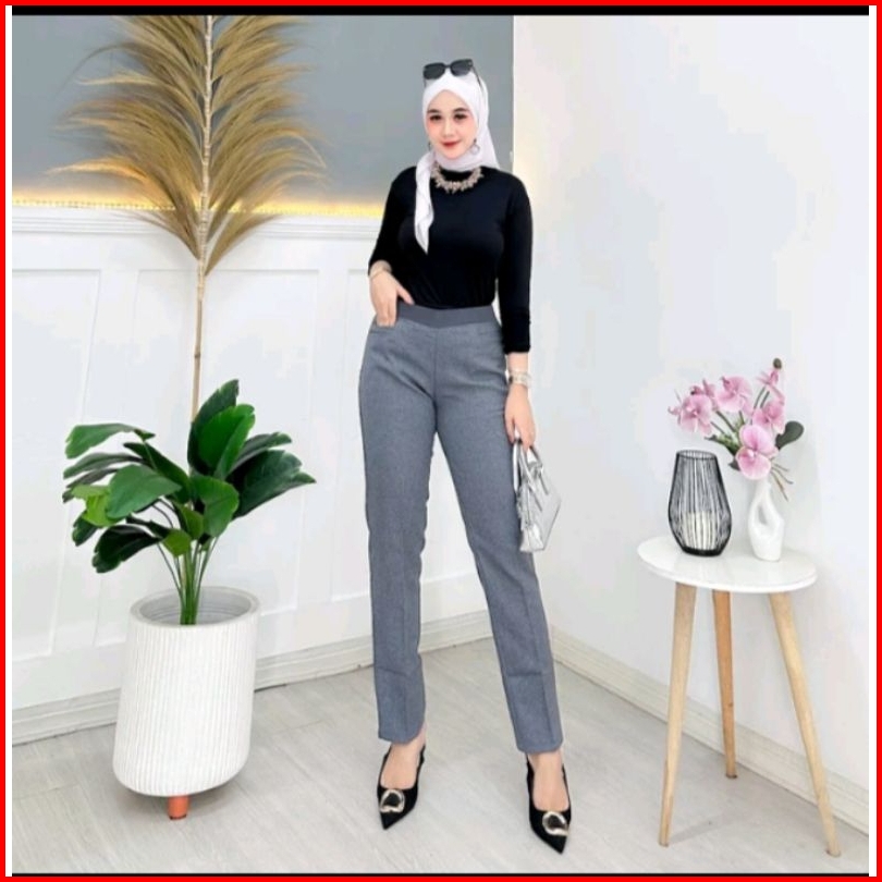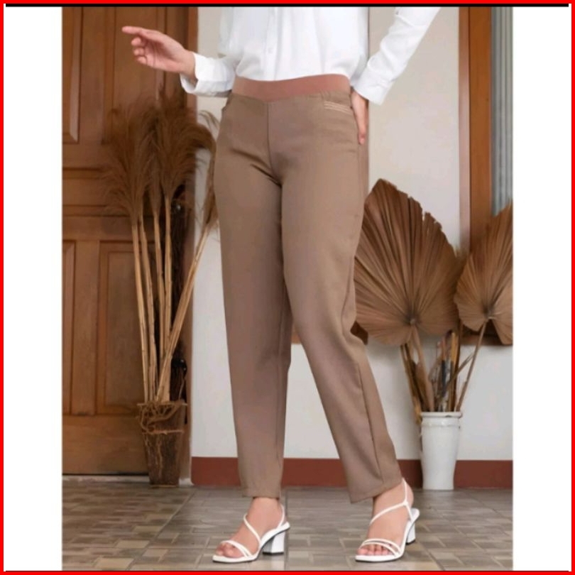 Celana Kerja Wanita Pinggang Karet Elastis Kain Wool Import
