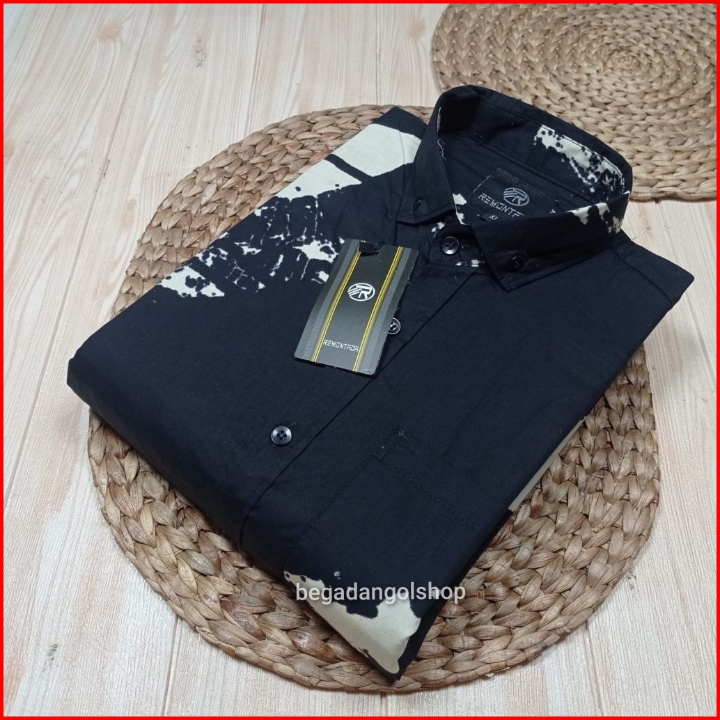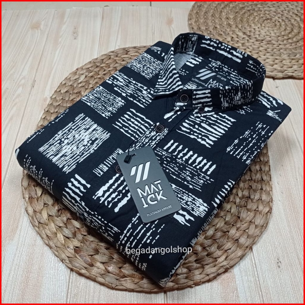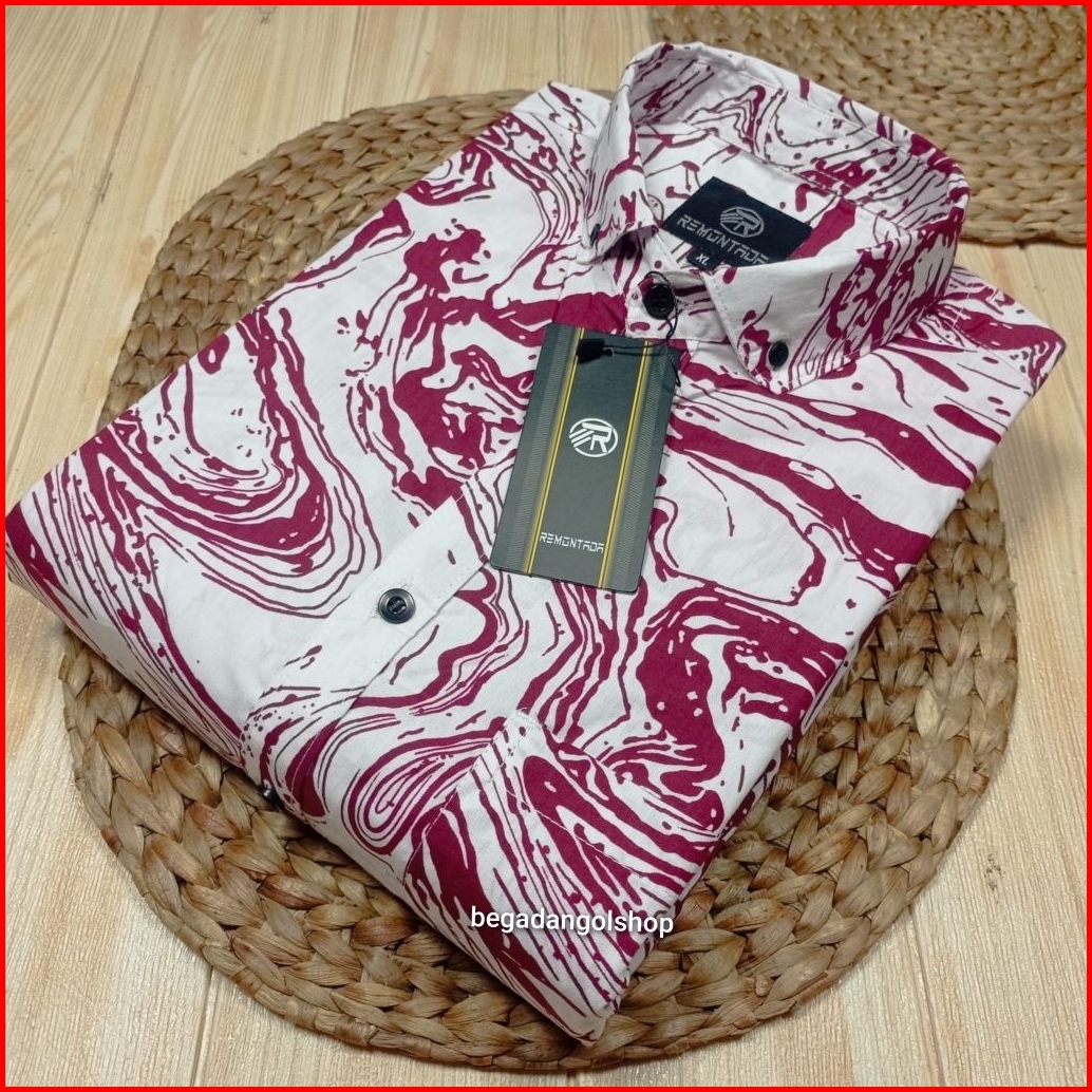 Kemeja Pria Katun Motif Full Print Lengan Pendek
