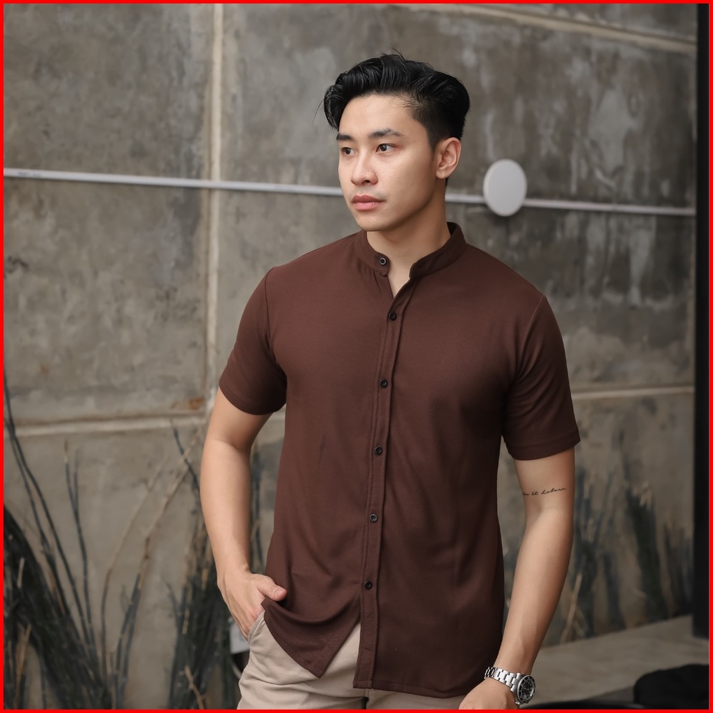Kemeja Slimfit Pria Polos Casual Lengan Pendek Bahan Pique Premium Warna Putih
