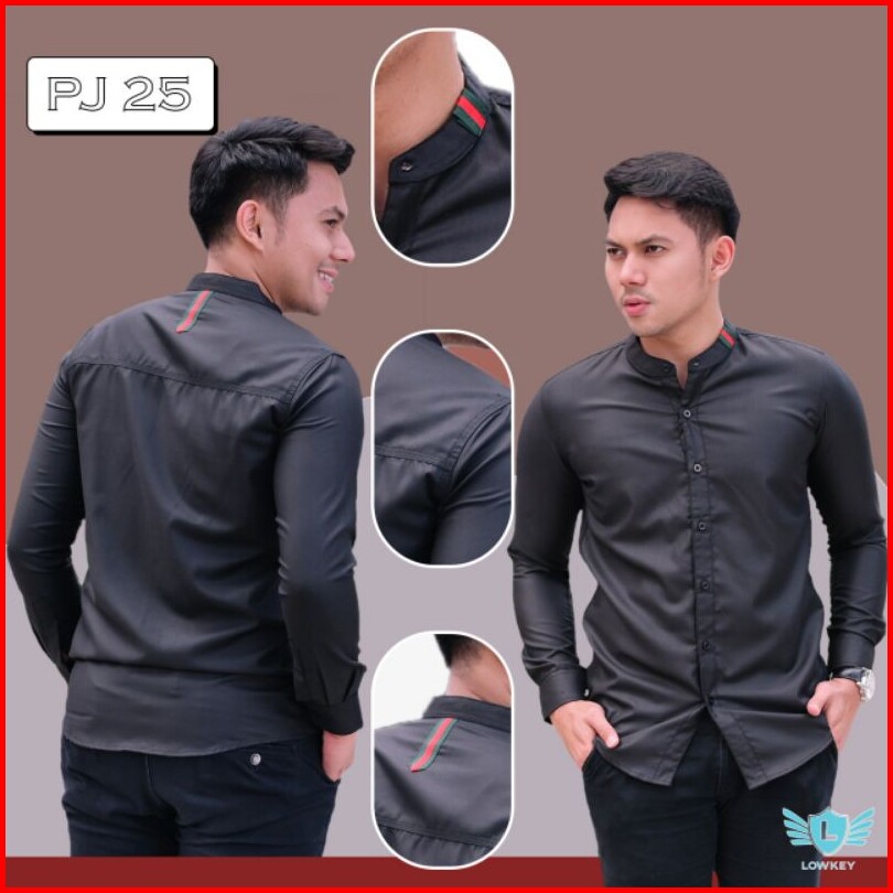 Kemeja Pria Slimfit Lowkey Premium Pj 25 Koko Hitam Hem Atasan Kemeja Baju Koko Laki-laki Cowok Slimfit Kemeja Pria Panj