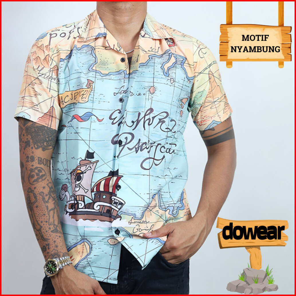 Dowear Baju Kemeja Lengan Pendek Anime Pria Wanita Motif Full Printing Kartun Map One Piece 123