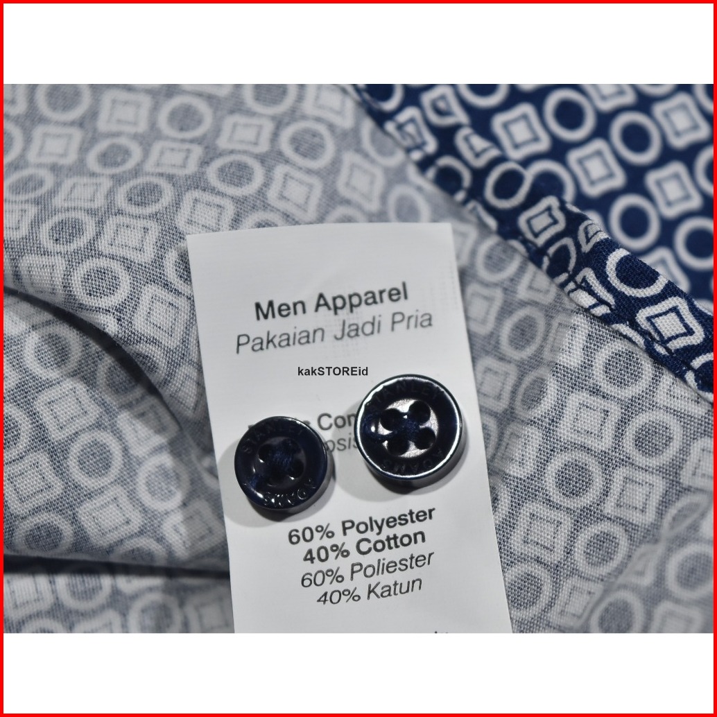 Stanley Adams Kemeja Pria Lengan Panjang Navy Motif Slimfit Sas 395