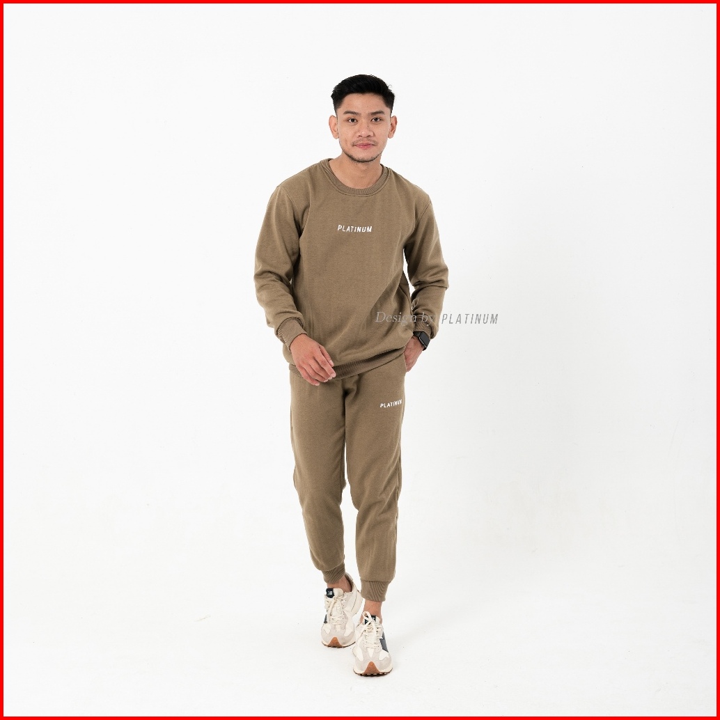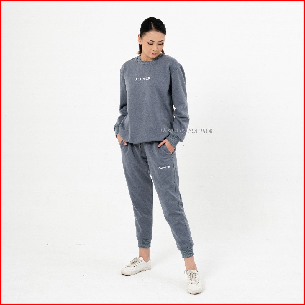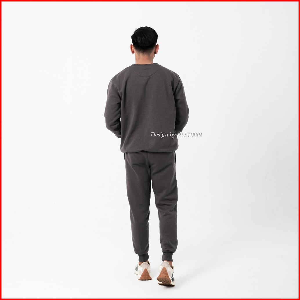 Platinum World Oneset Crewneck Celana Jooger Couple Unisex Pria - Wanita Ukuran Jumbo Oneset Kasual Sporty Olahraga Gym