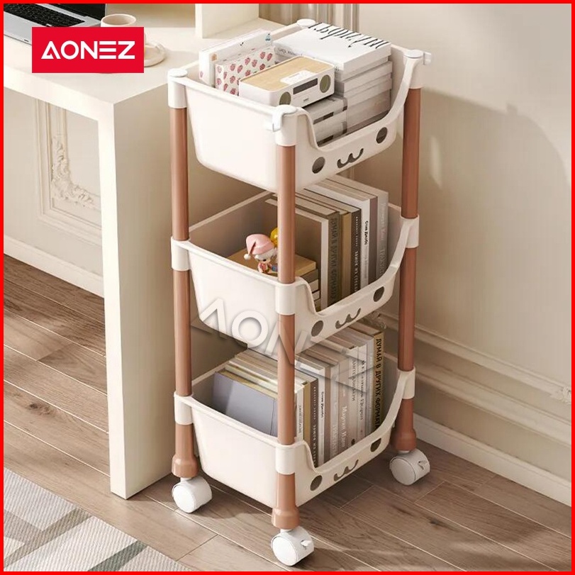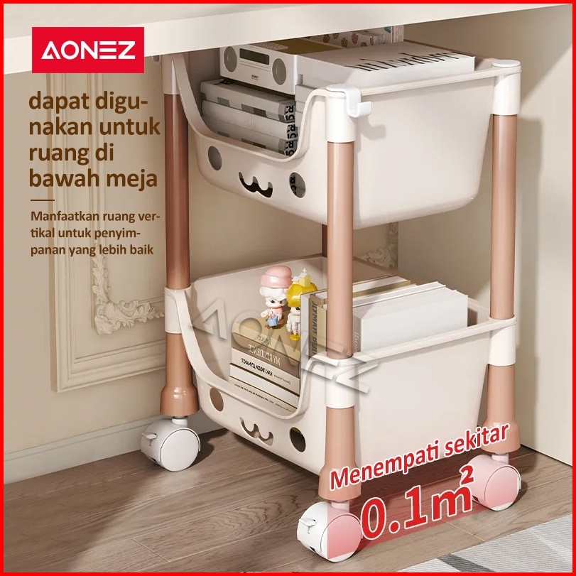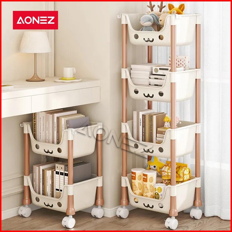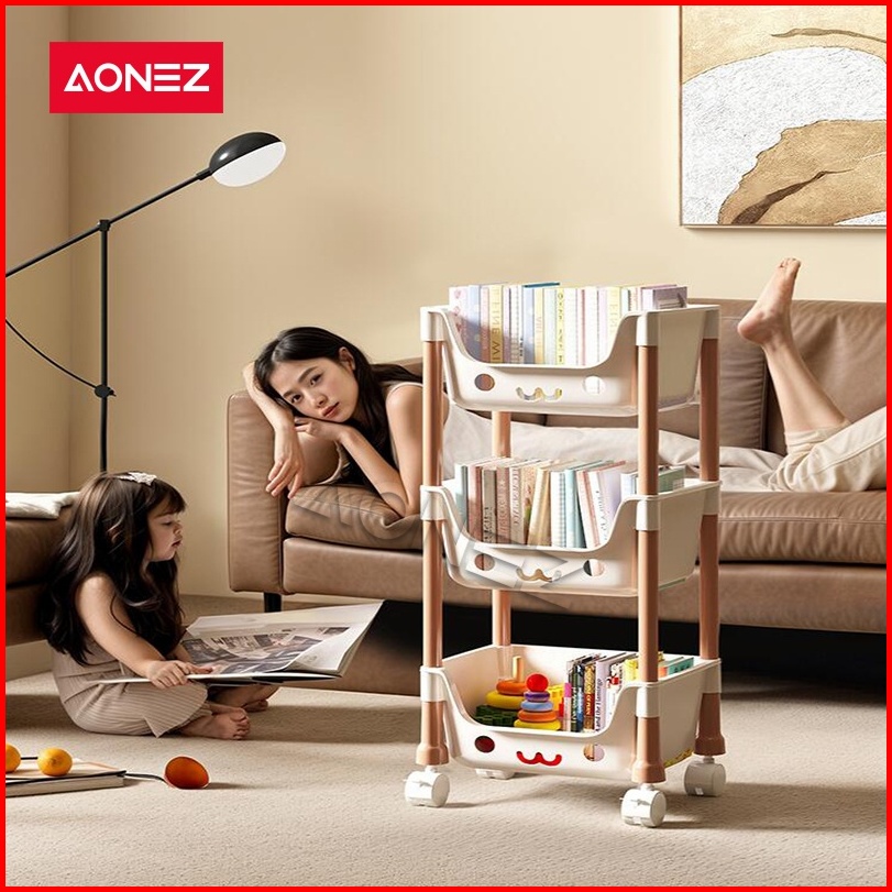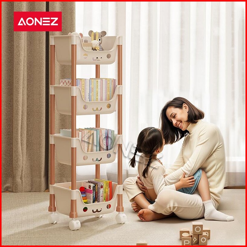 Aonez Rak Buku Kartun Lucu - Rak Buku Anak Dengan Roda Rak Penyimpanan Buku Multifungsi Untuk Rumah Dan Kantor