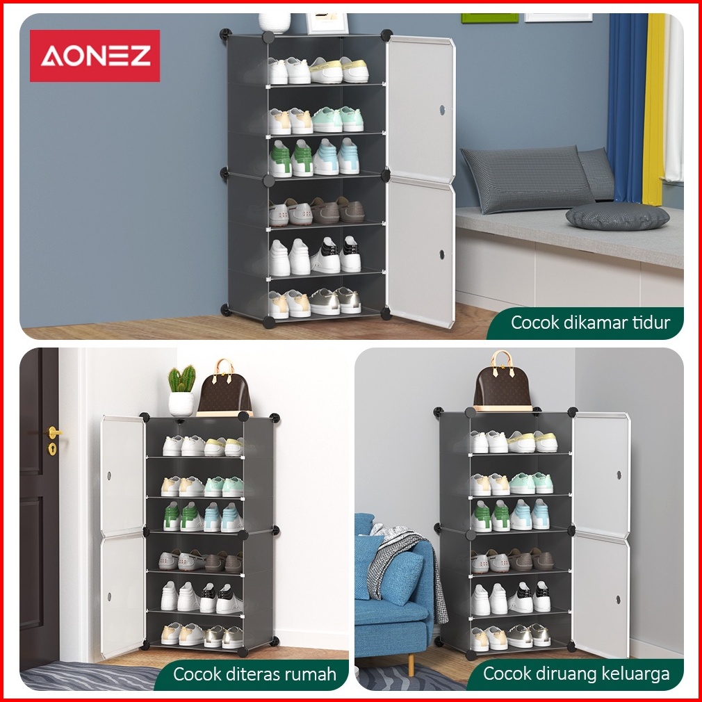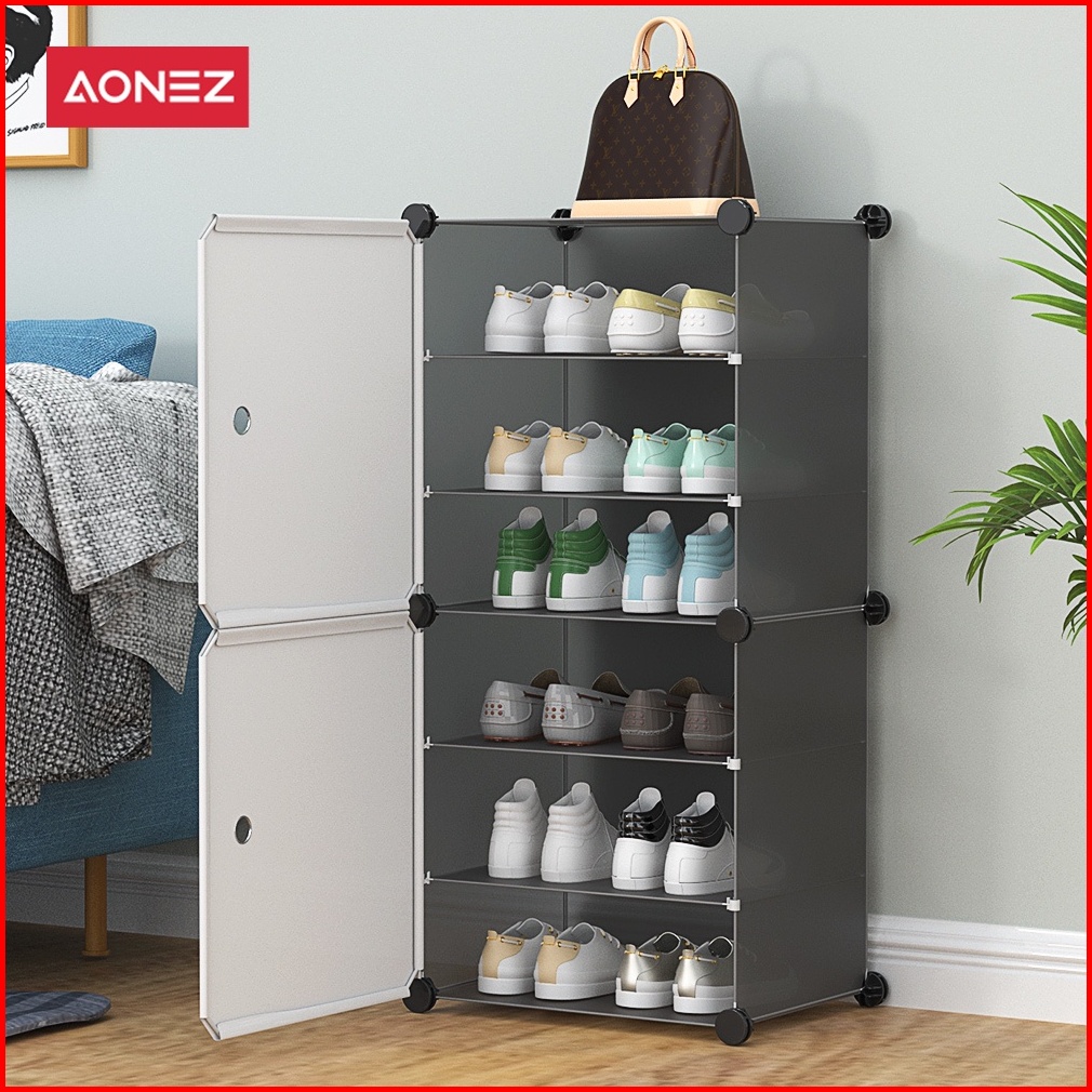 Aonez Rak Sepatu Anti Debu Abu-abu Lemari Sepatu Minimalis Susun Shoe Cabinet Tempat Sepatu Kotak