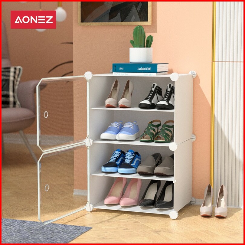Aonez Rak Sepatu Lemari Sepatu 1 Baris 4 Lapis Kabin Sepatu Shoe Cabinet 4 Tingkat Kotak Sepatu