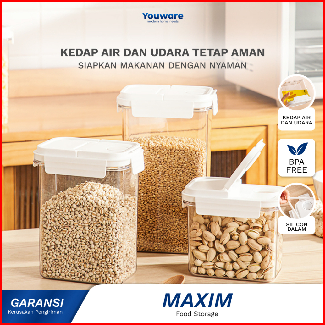 Youware - Maxim Toples Transparan Makanan Kontainer Botol Penyimpanan Cemilan Makanan Beras Sereal Kacang-kacangan Snack