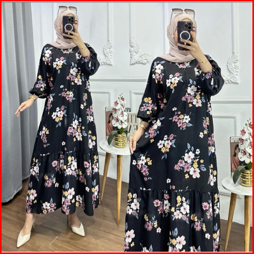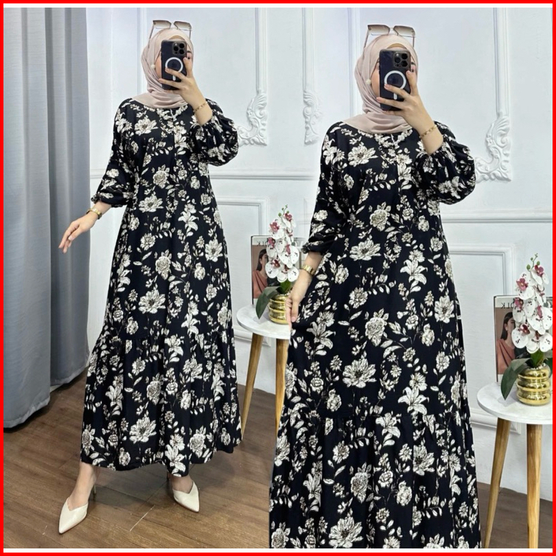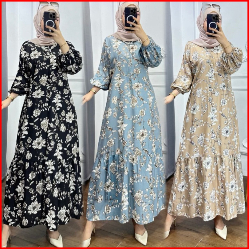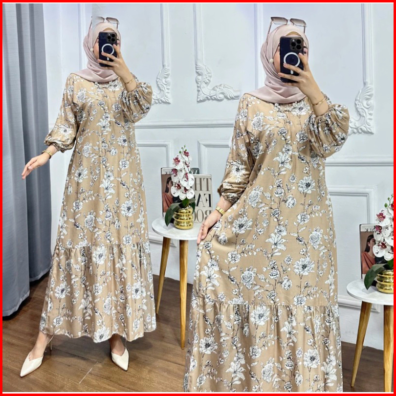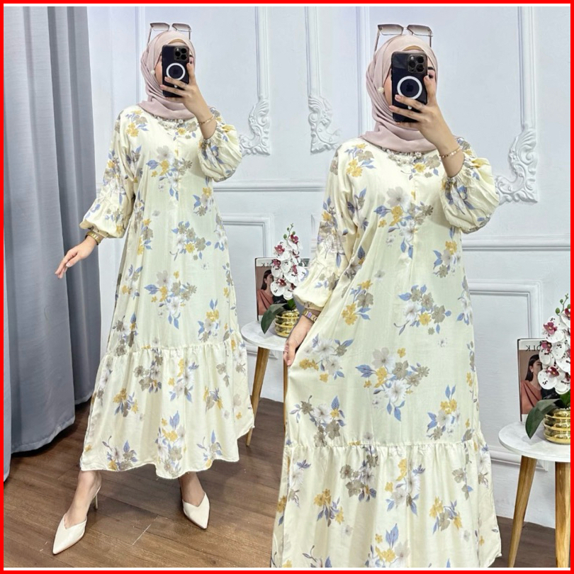 Midi Dress Wanita Motif Terbaru Busui Adem Dan Tidak Nerawang