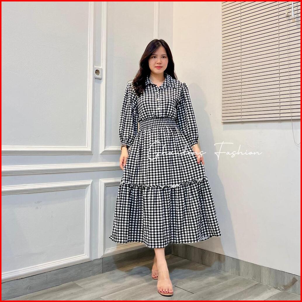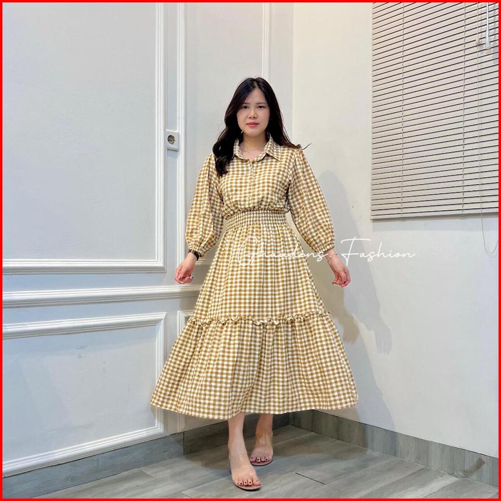 Ghaudens - Long Dress Collar Gingham Crincle 6868-7 8
