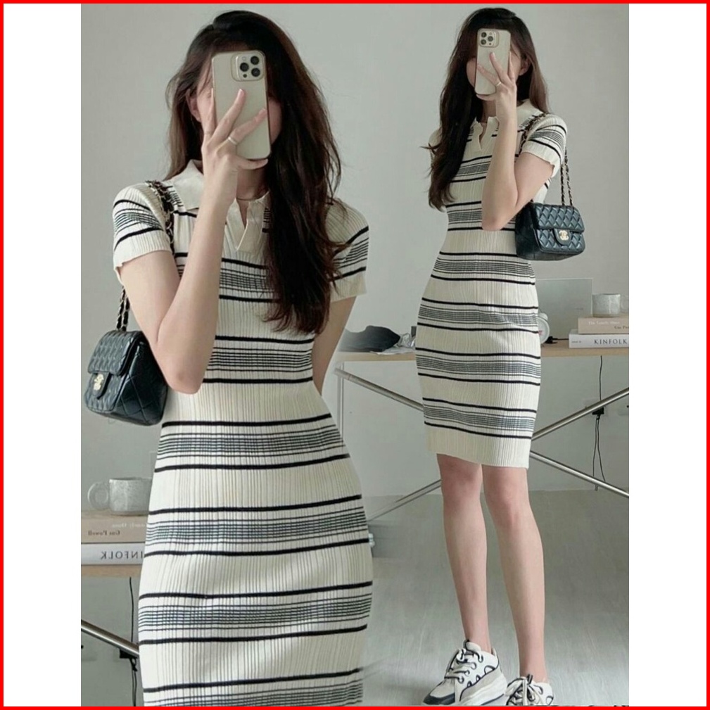 Dress Rajut Wanita Iisaii - Mini Dress Perempuan Terbaru Motif Salur