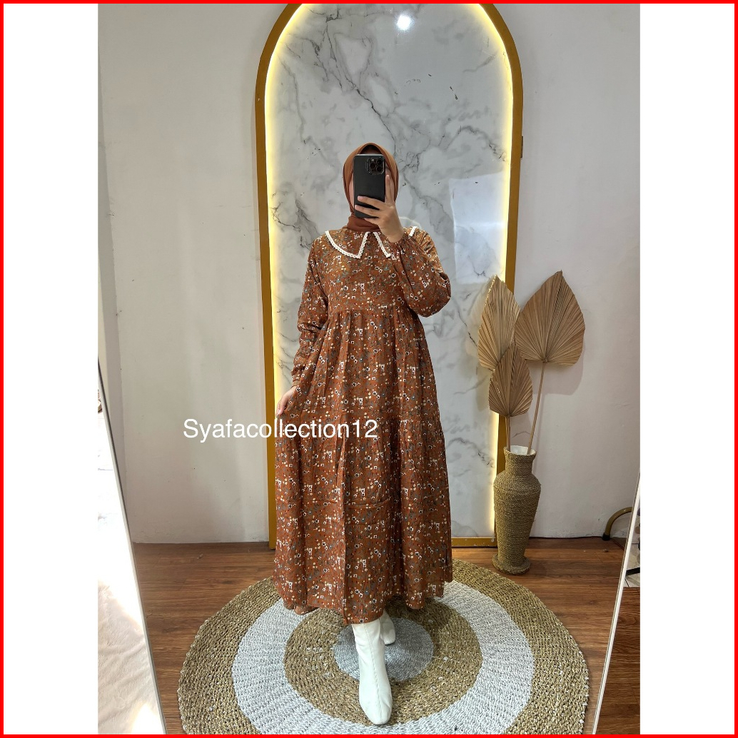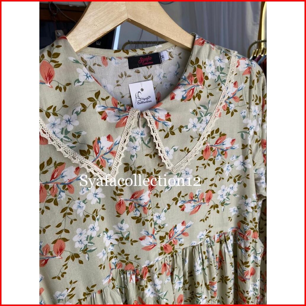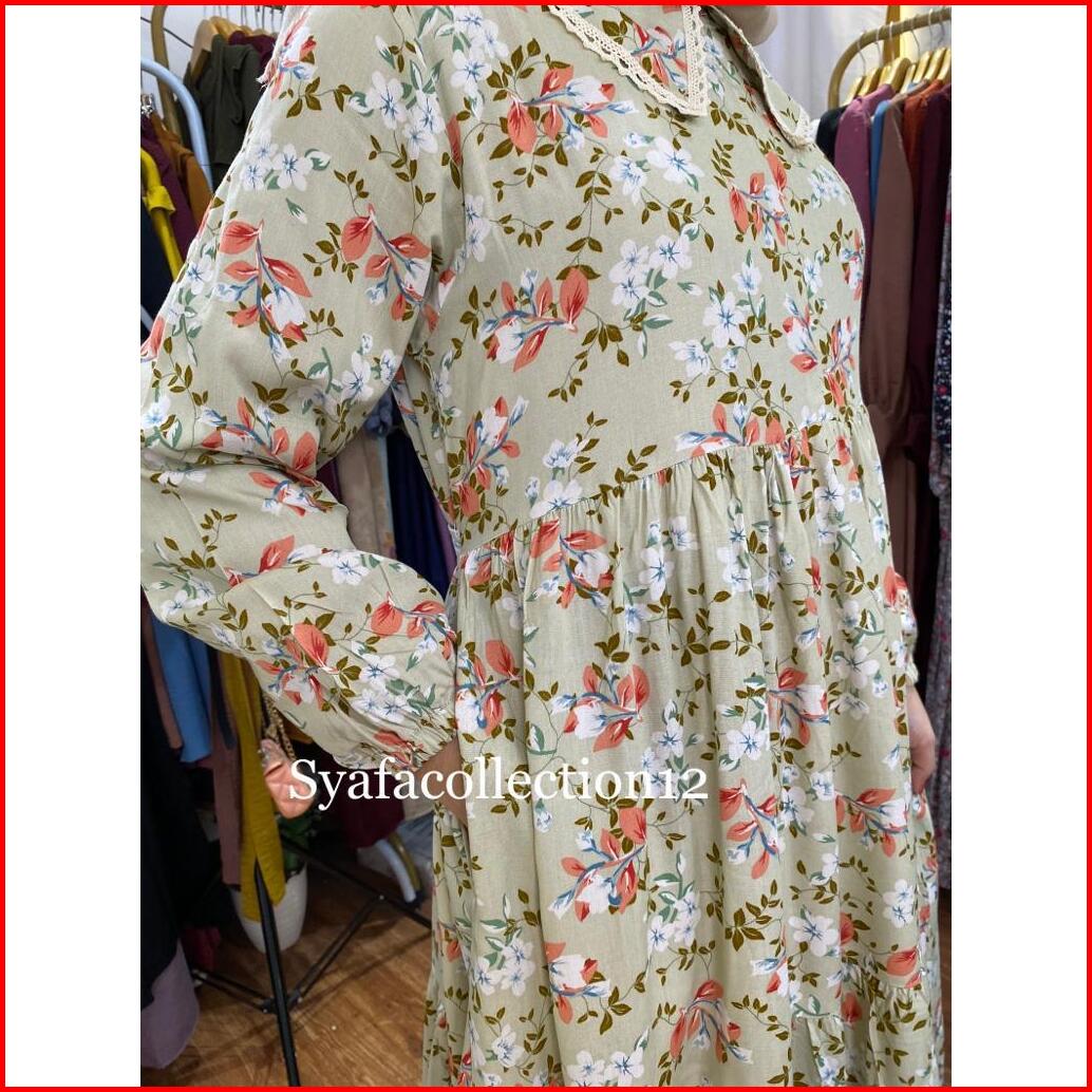 Syafacollection 032 Midi Dress Rayon Motif Bunga Jumbo Renda Busui Kantong Gamis Muslim Butik