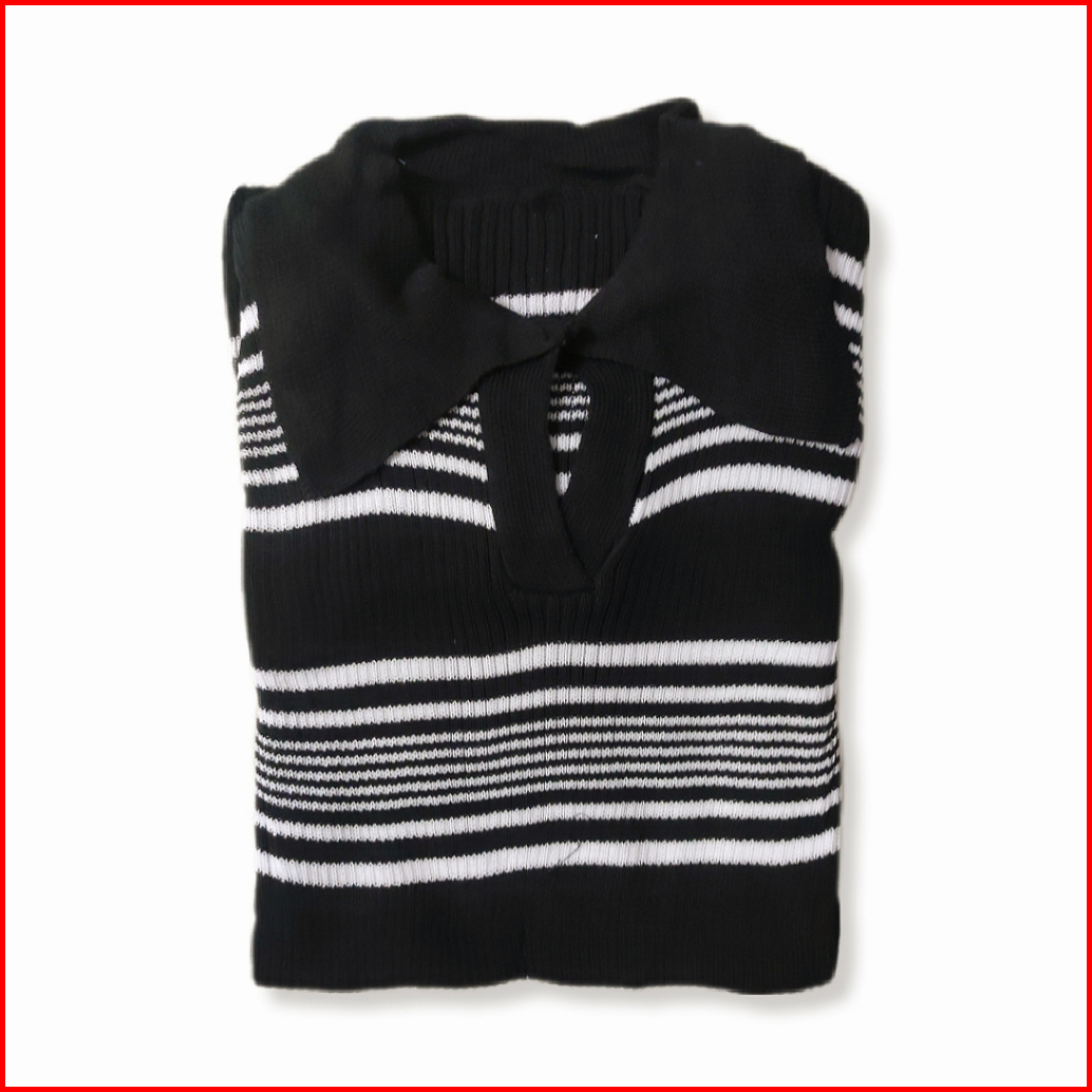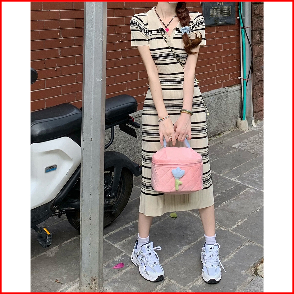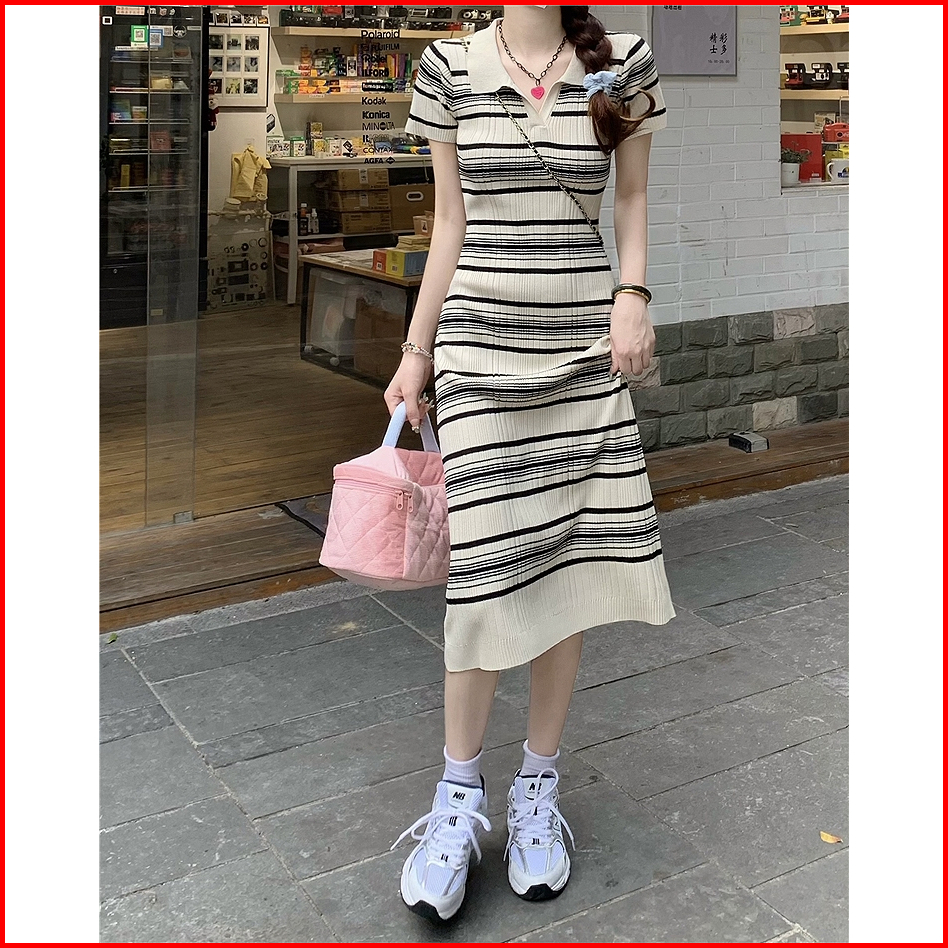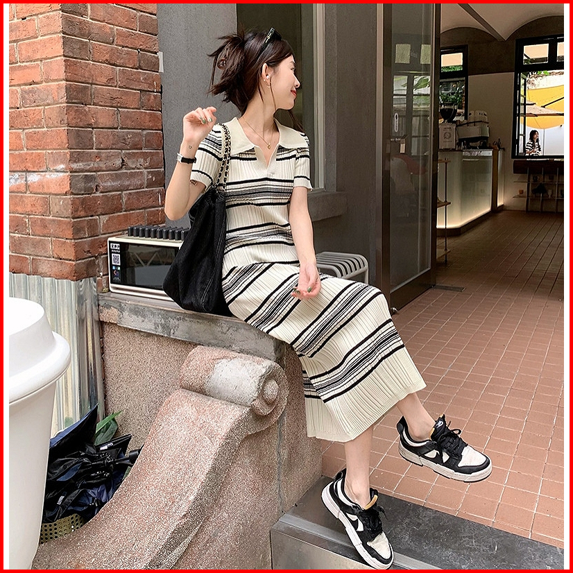 Dress Rajut Knit Salur Model Panjang Bahan Tebal