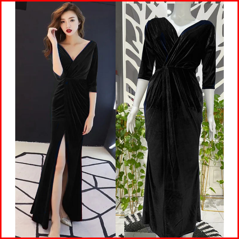 Long Dress Kezia Bludru Velvet Pesta Elegan