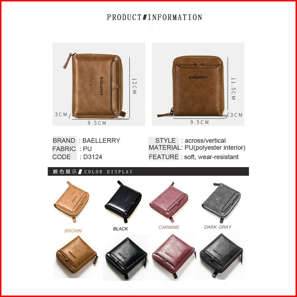 Baellerry D3124 Dompet Pria Bahan Kulit Pu Leather Premium Watchkite Wkos