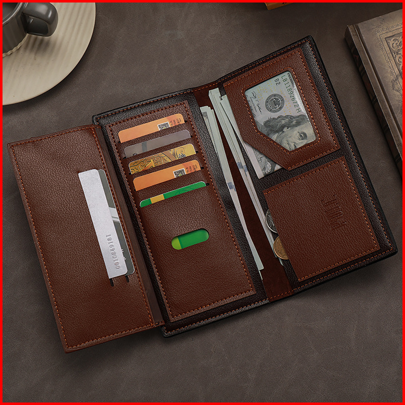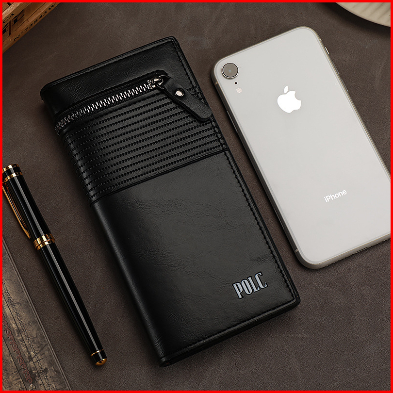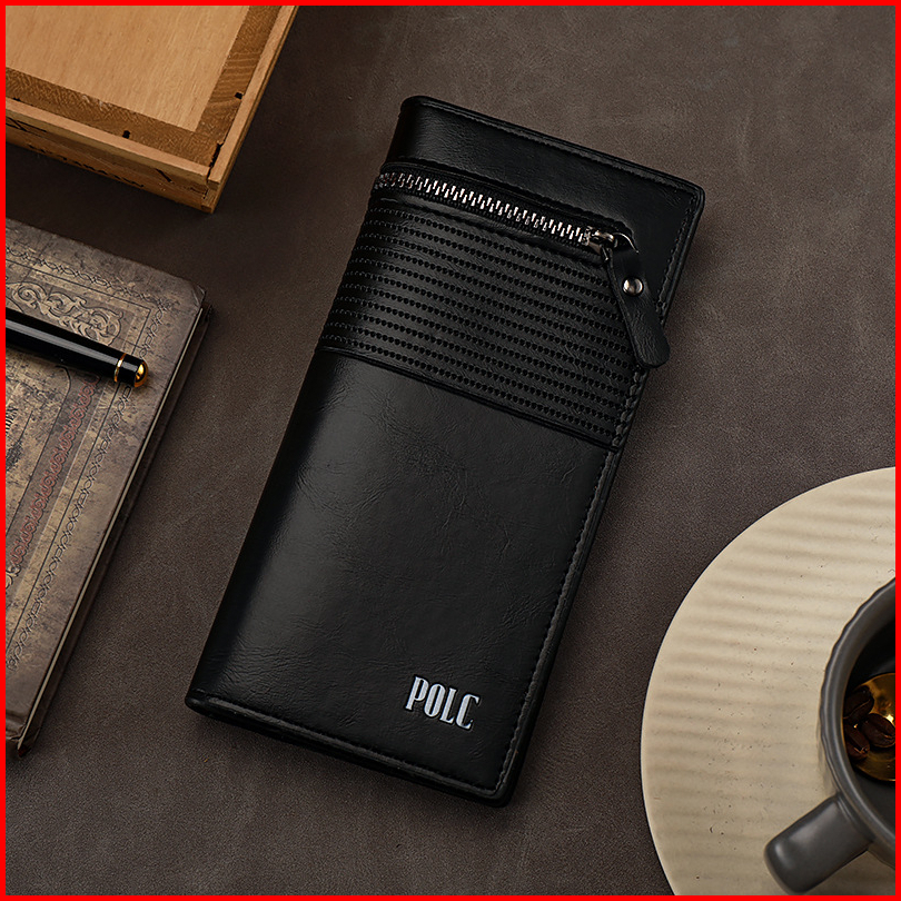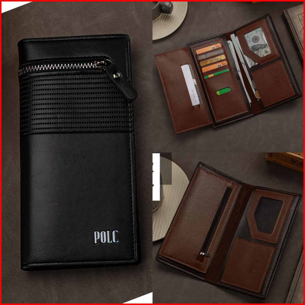 Dompet Lipat Pria Panjang Original Cowok Keren Kulit Premium Simple Hitam Distro Branded Slot Kartu Uang Koin Resleting