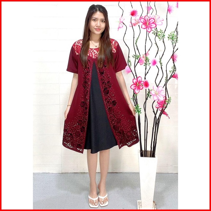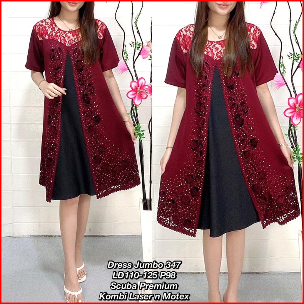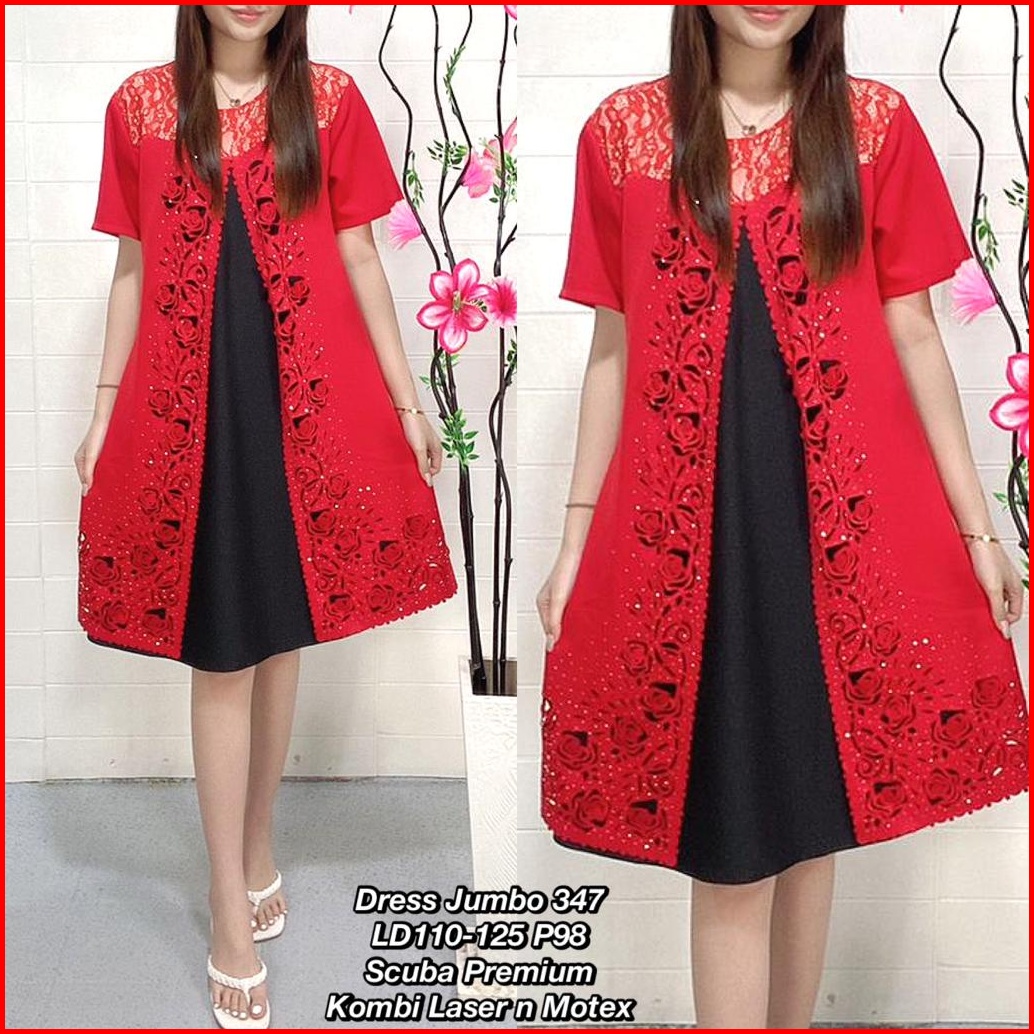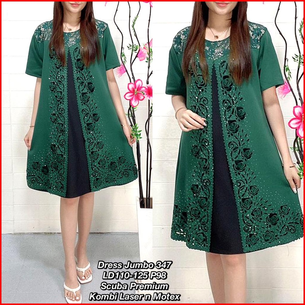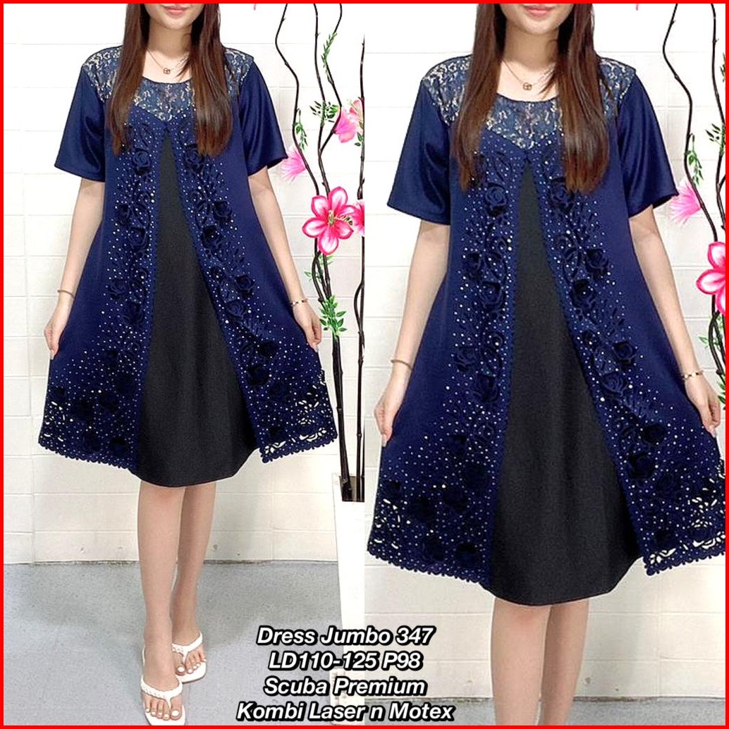 Dress Jumbo 347 - Bahan Scuba Premium - Variasi Brukat Dan Laser - Baju Natal - Dres Pesta