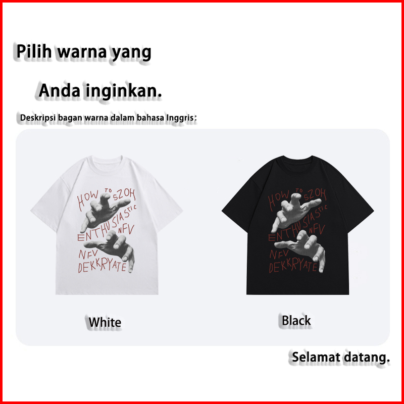 Gaya Pasang Surut Amerika Huruf Telapak Tangan Dicetak Katun Kaos Lengan Pendek Pria Oversize Musim Panas Kasual Serbagu