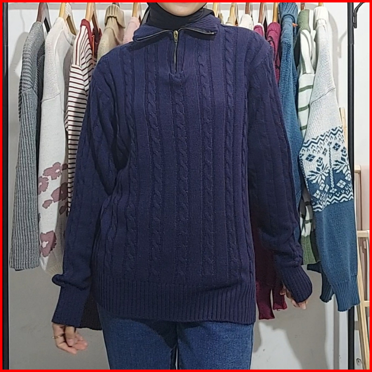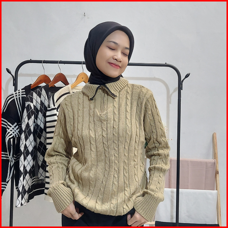 Sweater Rajut Knit Outer Felix Bahan Tebal Half Zipper Kerah Tinggi Premium Import