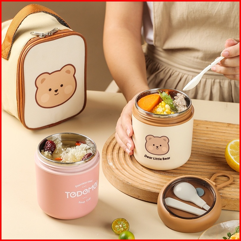 Stainless Steel Soup Cup Tempat Sup Lunch Box Include Insulated Bag