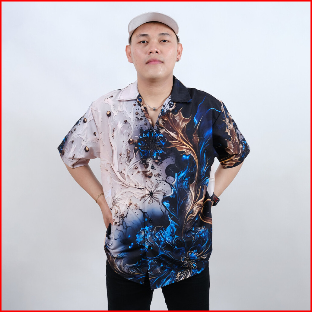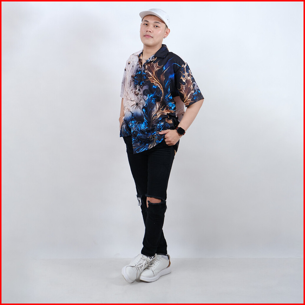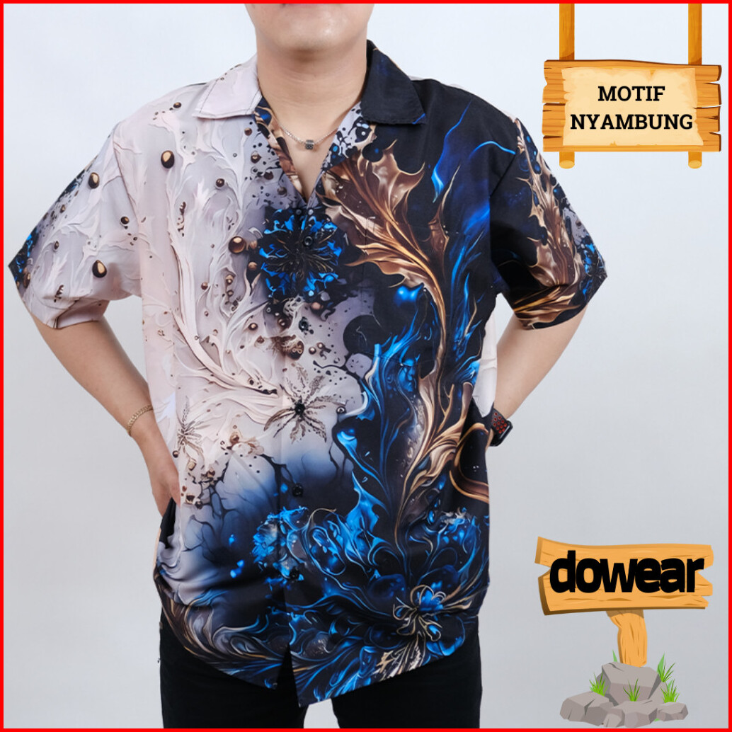 Dowear Baju Kemeja Motif Cewe Cowo Motif Full Printing Oversize Pria Wanita Outdoor Elegant Blue 241