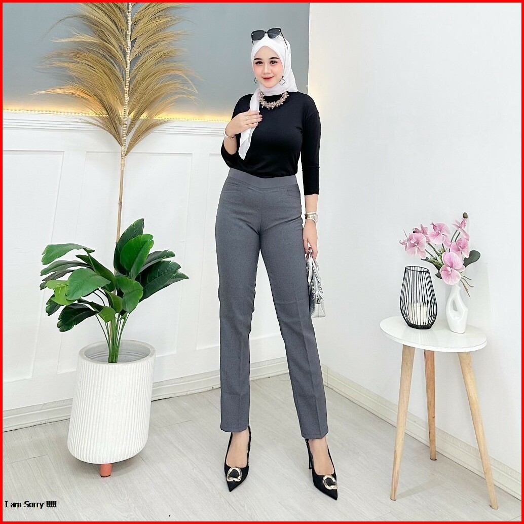Celana Kain Woll Celana Kerja Wanita Model Pinggang Karet Dan Resleting Kancing