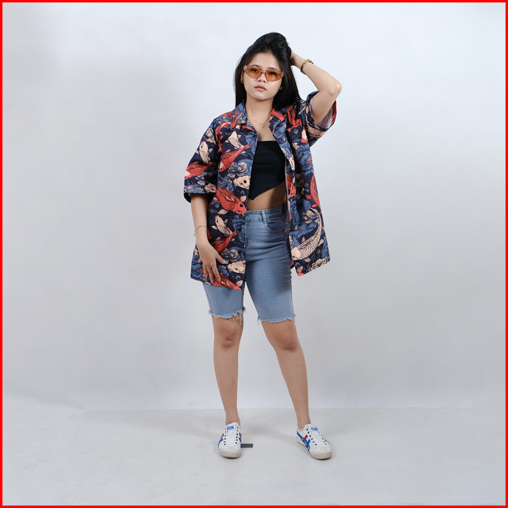 Dowear Baju Kemeja Pria Wanita Motif Full Printing Dowear Laki Laki Kekinian Koi Flower 127