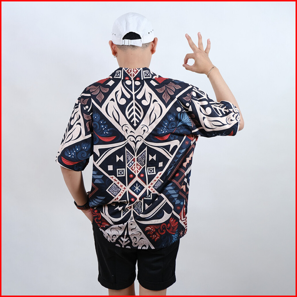 Dowear Baju Shirt Kemeja Cewe Cowo Motif Print Lengan Pendek Motif Printing Premium Nordic Cream 242