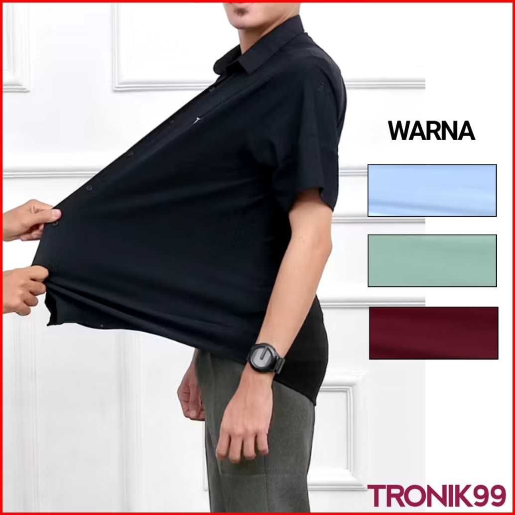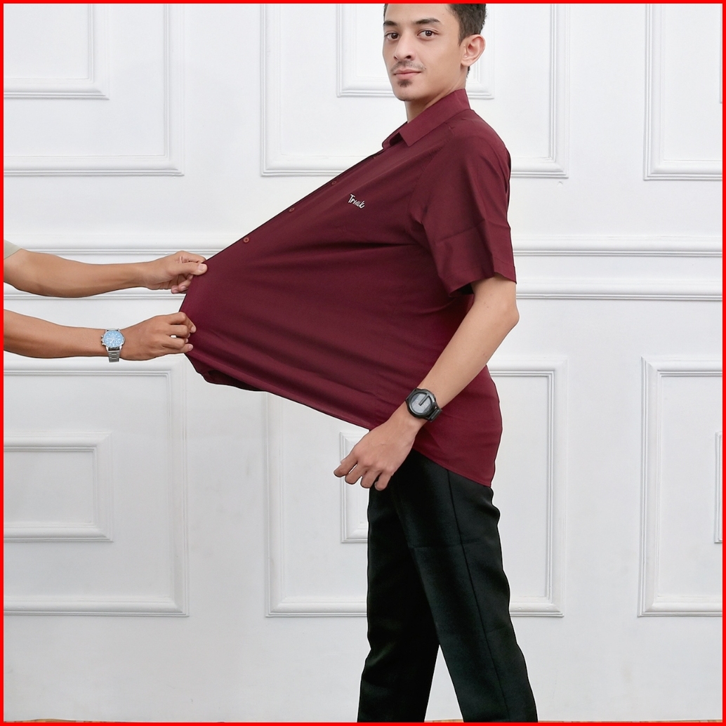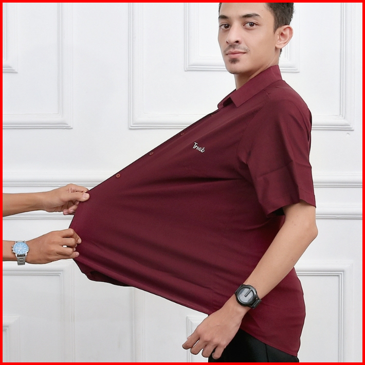 Trpnok Kemeja Polos Lengan Pendek Pria Katun Stretch Elastis
