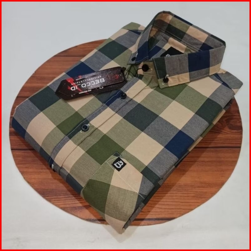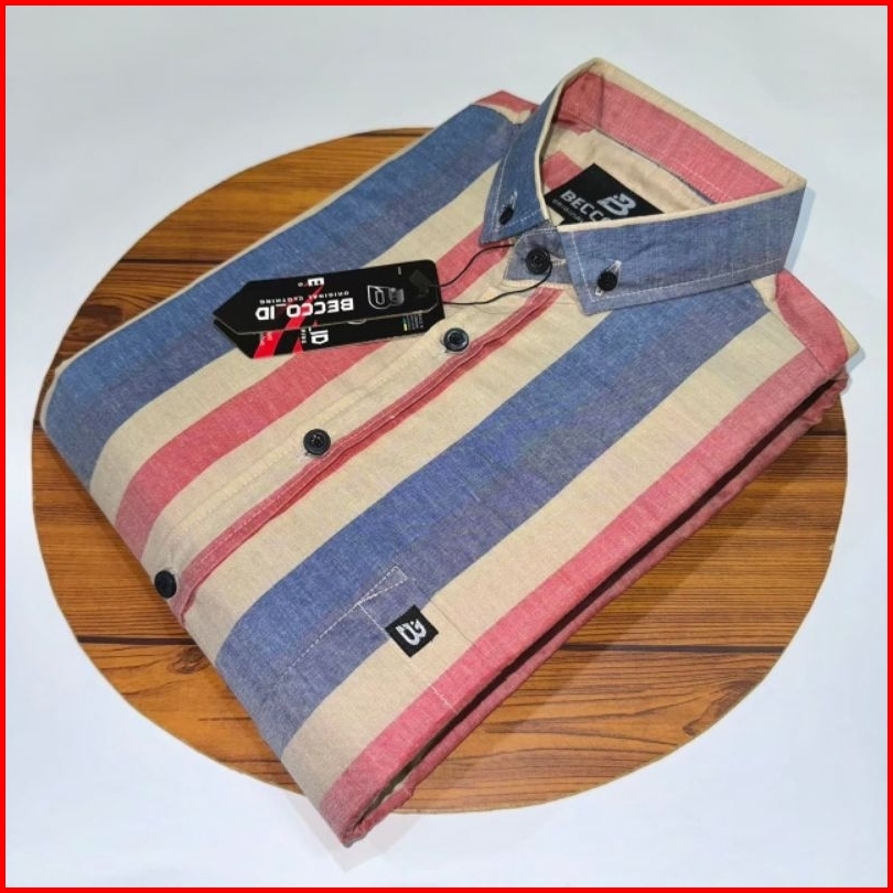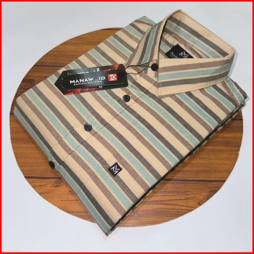 Kemeja Pria Lengan Pendek Katun Salur L-xl