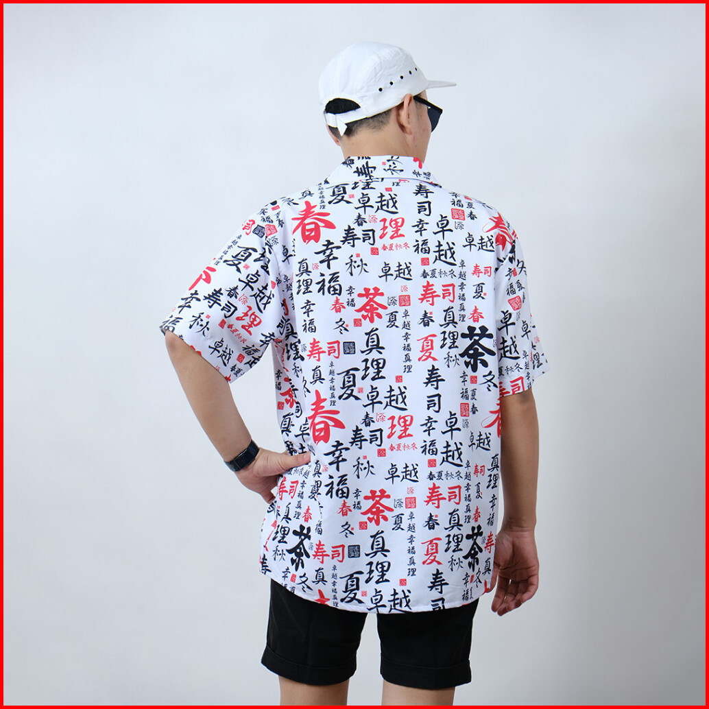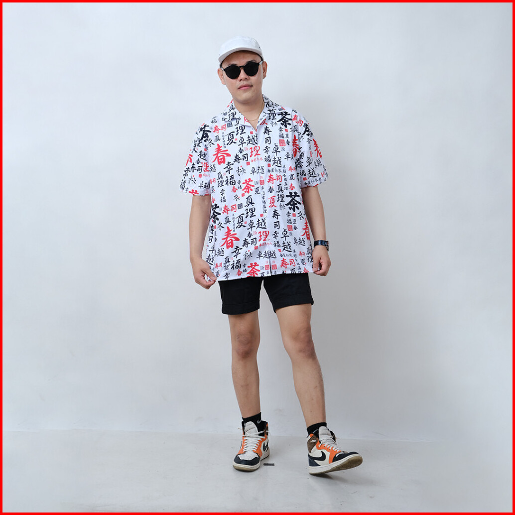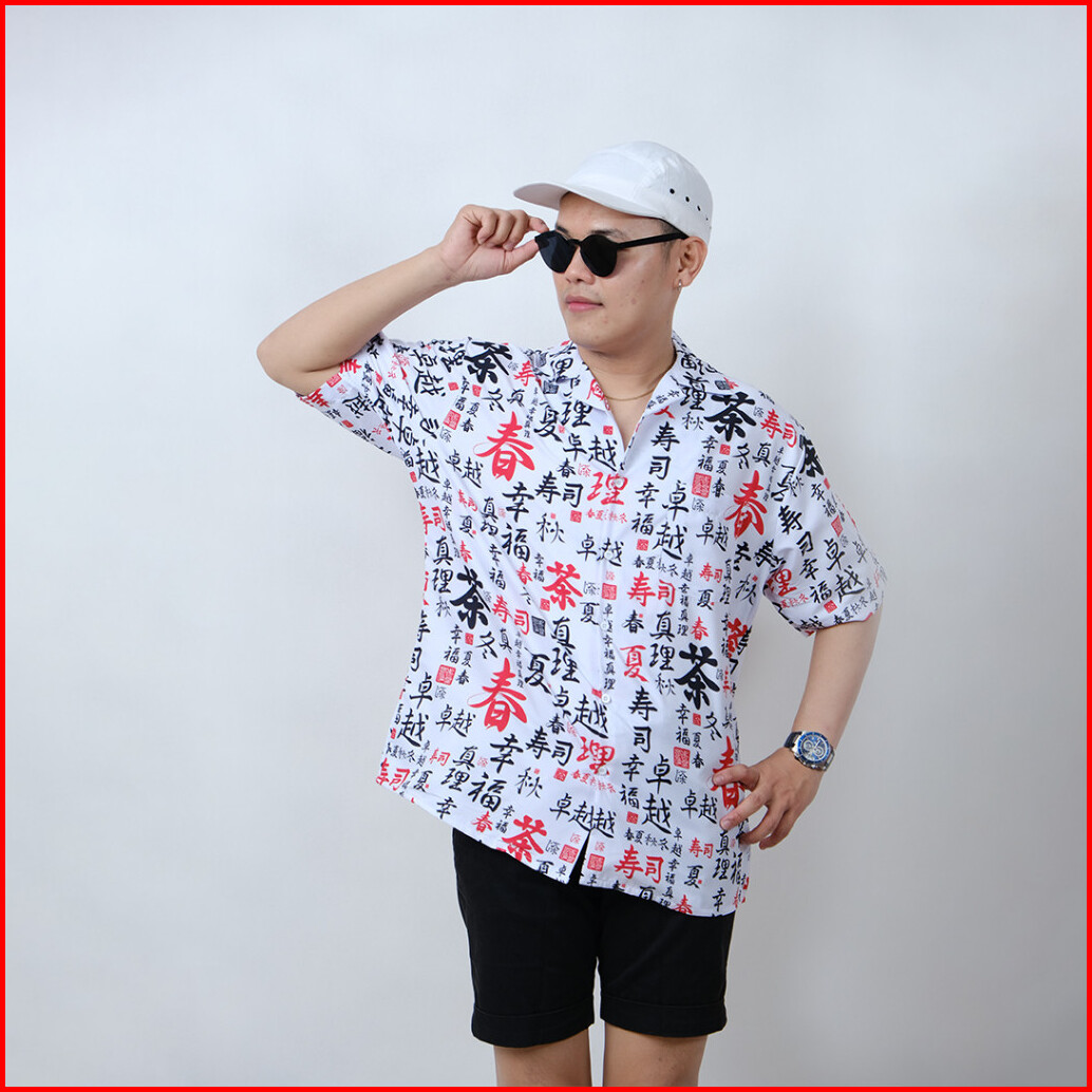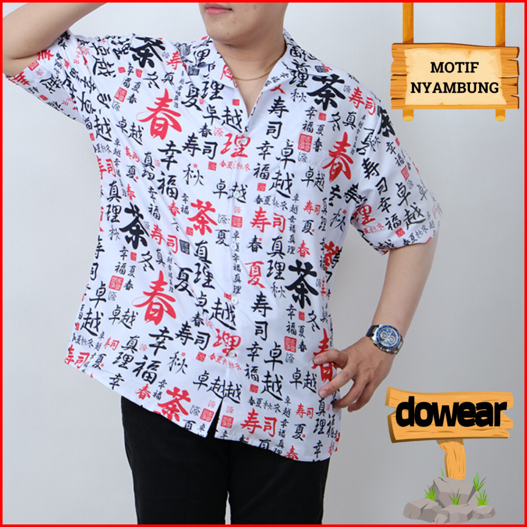 Dowear Baju Kemeja Motif Cewe Cowo Motif Full Printing Oversize Pria Wanita Outdoor Huruf Jepang 026