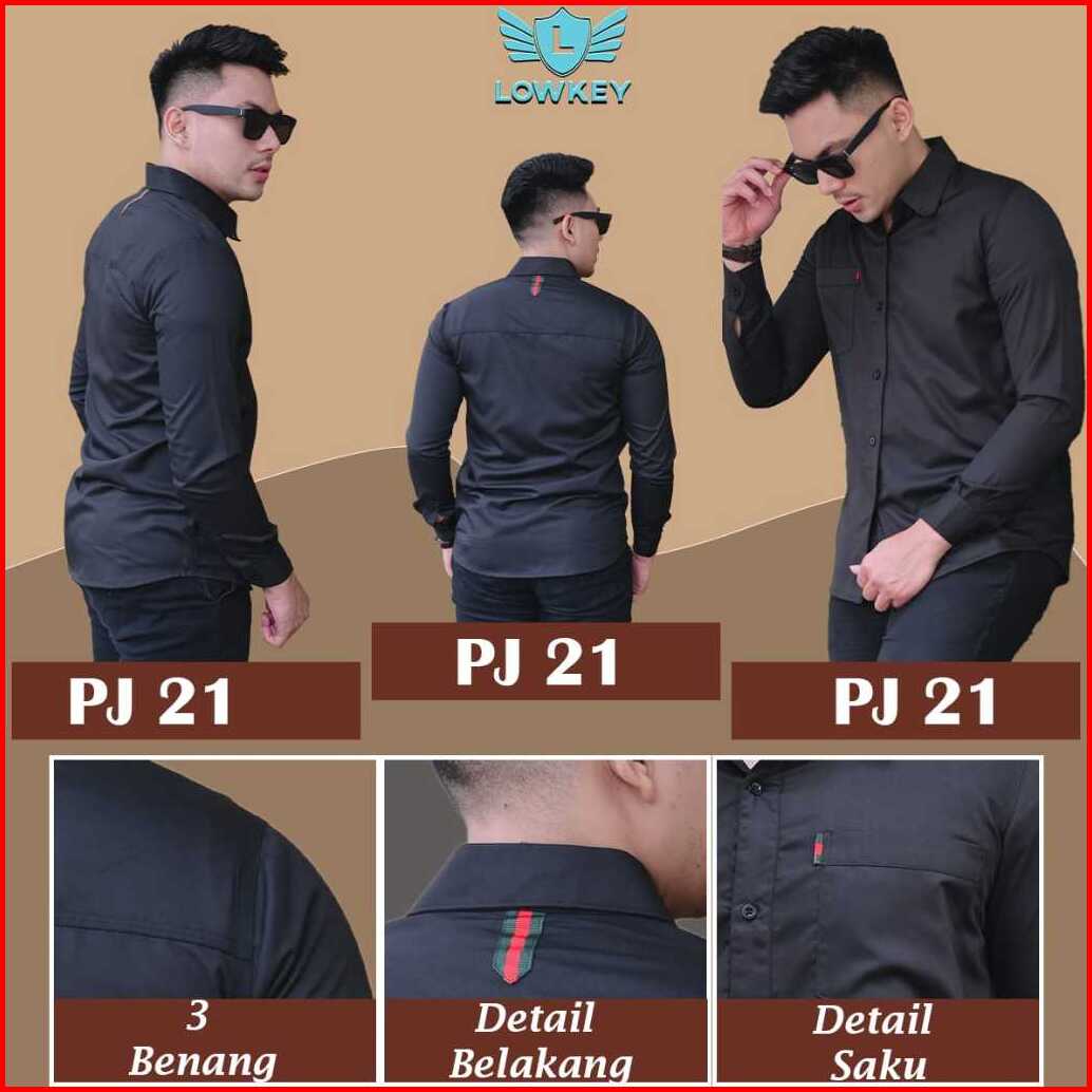 Kemeja Pria Slimfit Premium Pj 21 Hitam Hem Atasan Kemeja Baju Laki-laki Cowok Slimfit Kemeja Cowok Dewasa Kemeja Cowok