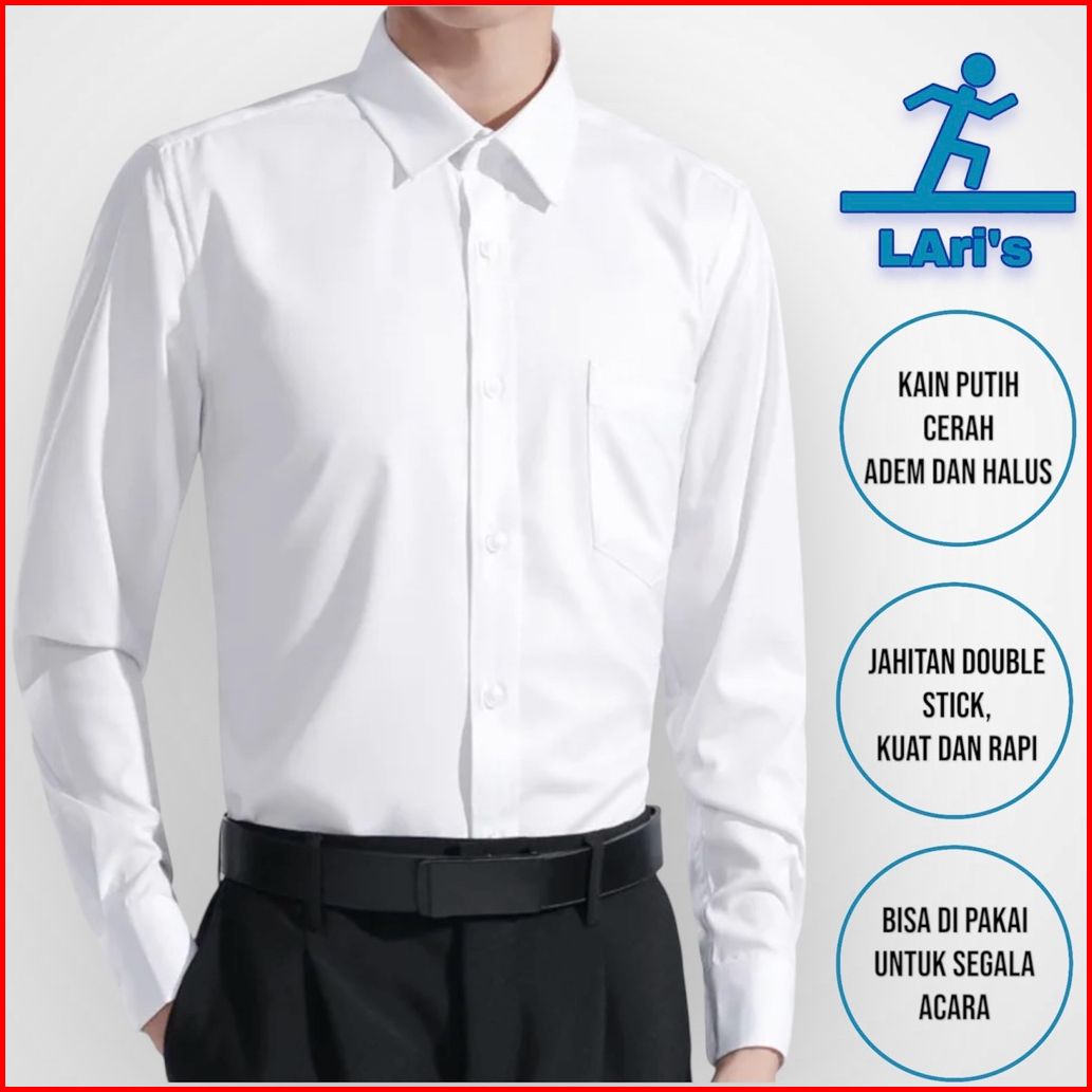 Laris Kemeja Putih Pria Lengan Panjang Baju Formal Kasual Kantor Kerja Santri