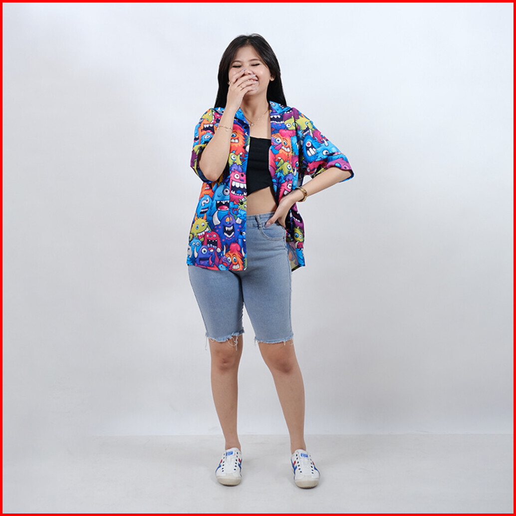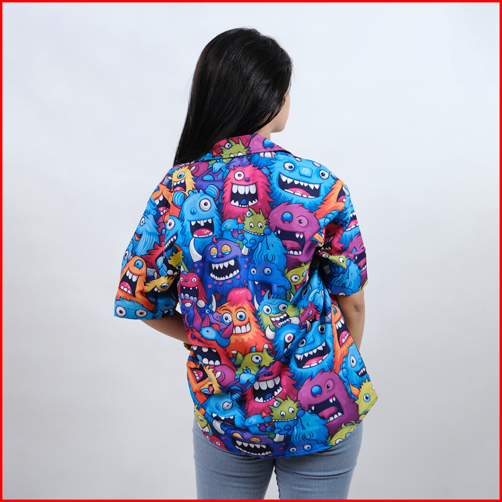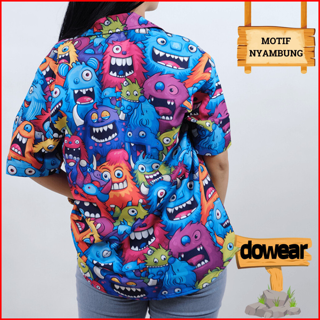 Dowear Baju Kemeja Kekinian Hem Motif Pria Wanita Trend Distro Jumbo Terbaru Monster Amuba 041