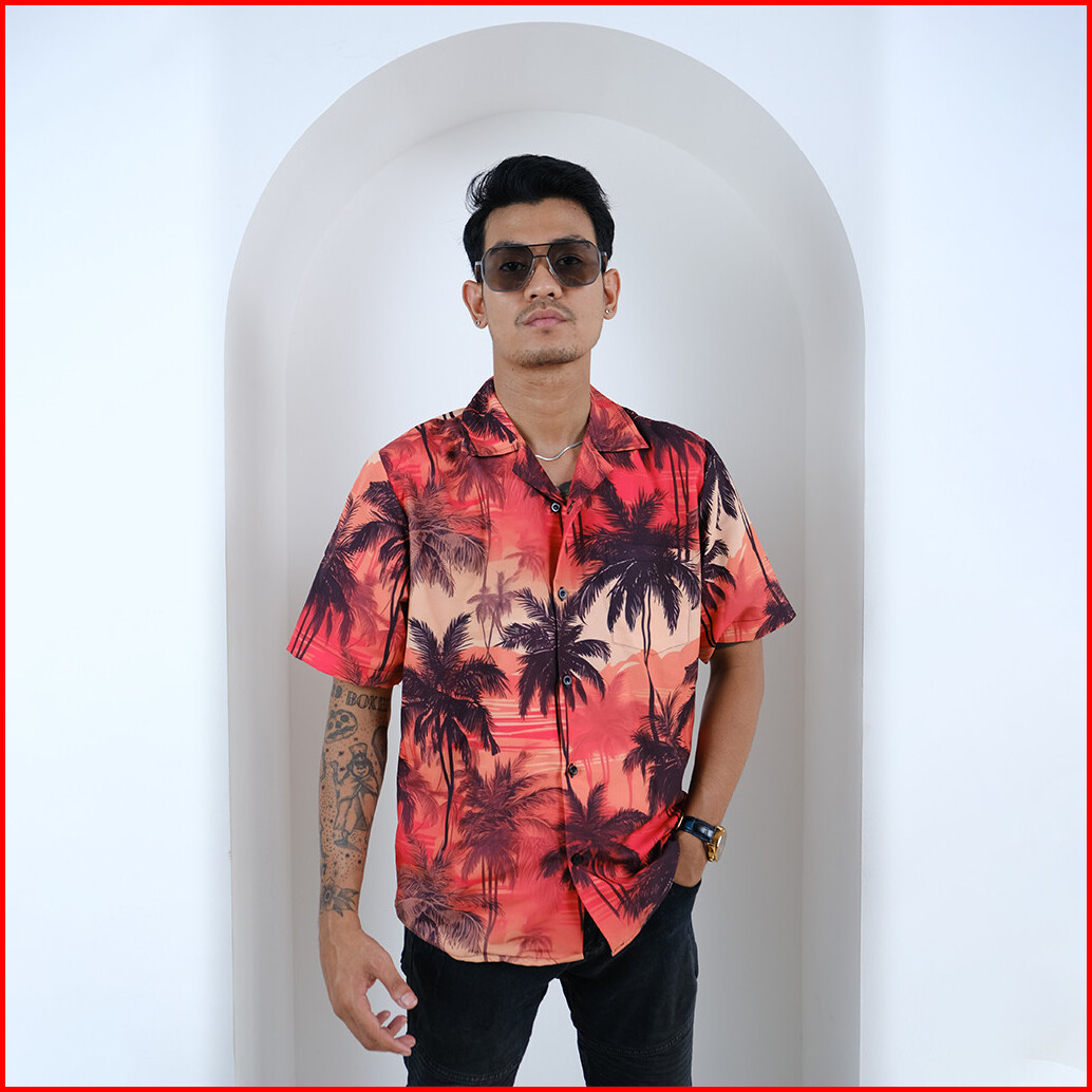 Dowear Baju Shirt Kemeja Pria Wanita Motif Printing Pantai Lengan Pendek Premium Pantai Sore 076