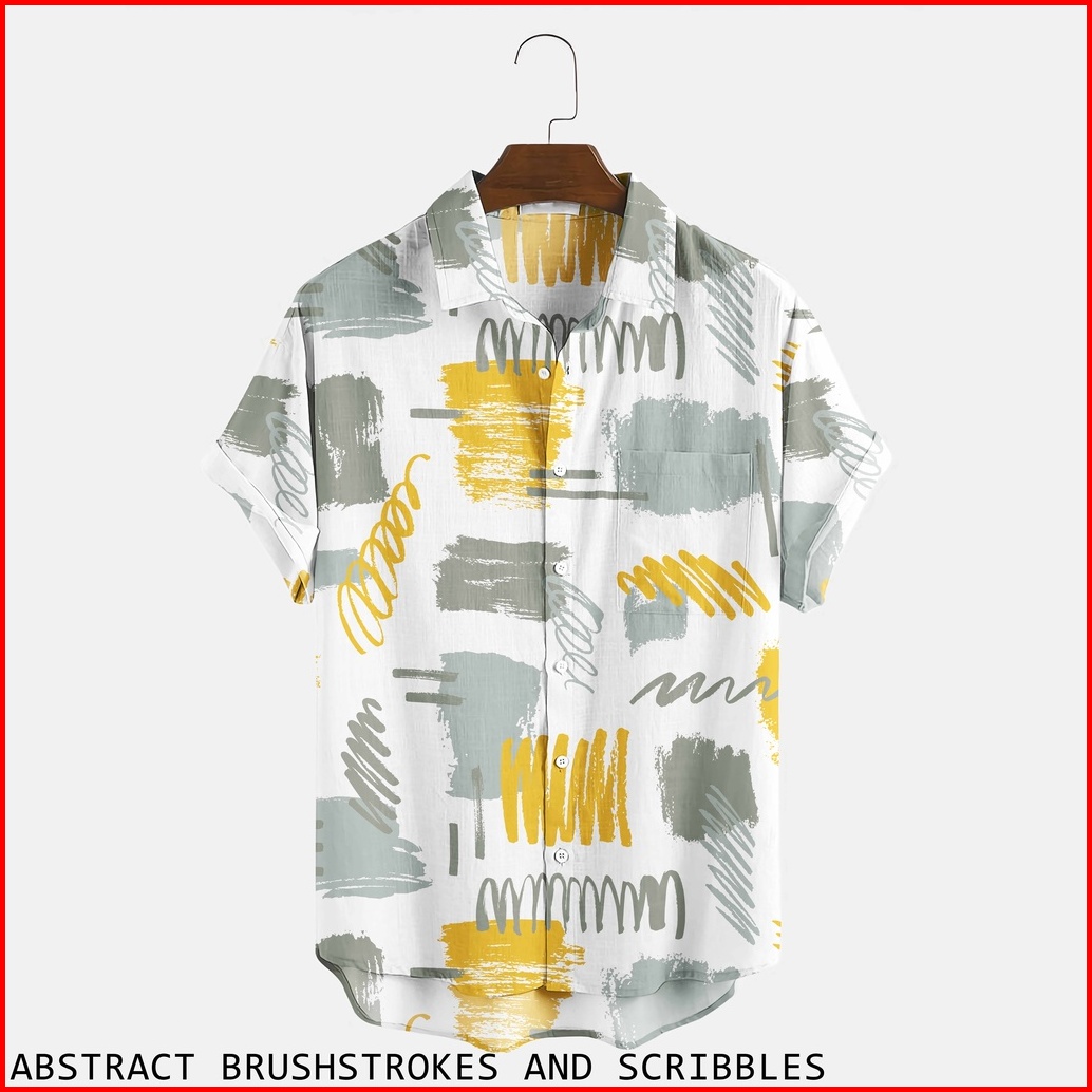 Kemeja Pria Premium - Abstract Brushstrokes And Scribbles
