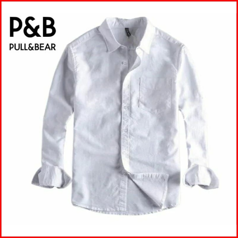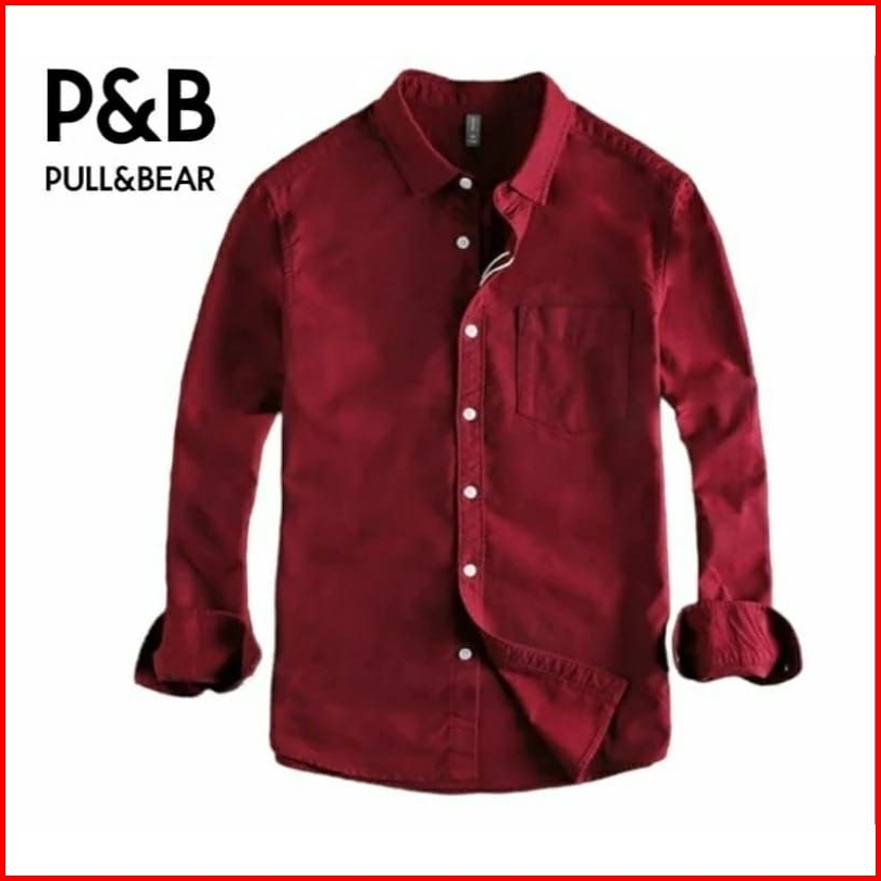 Promo Kemeja Pull Bear Lengan Panjang Basic Slim Fit Kemeja Polos