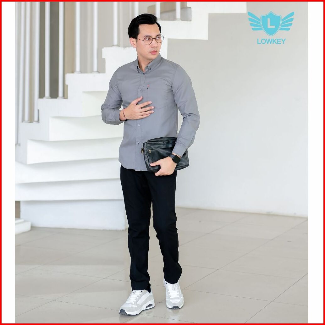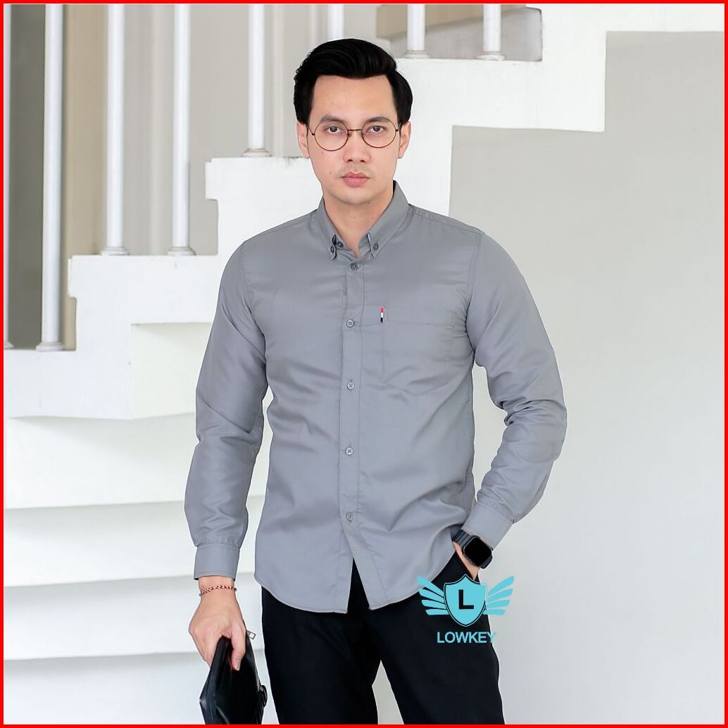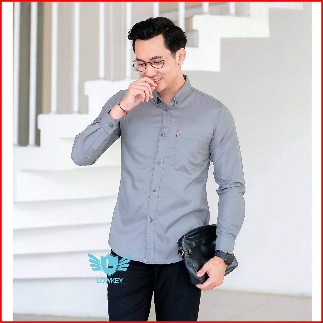 Kemeja Pria Slimfit Lowkey Premium Pj 18 Abu- Abu Hem Atasan Kemeja Baju Laki-laki Cowok Slimfit Kemeja Pria Panjang Kem