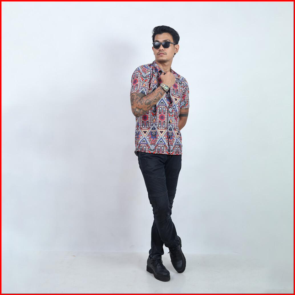 Dowear Baju Kemeja Laki Laki Motif Batik Pria Lengan Pendek Kondangan Modern Topeng Persegi 165