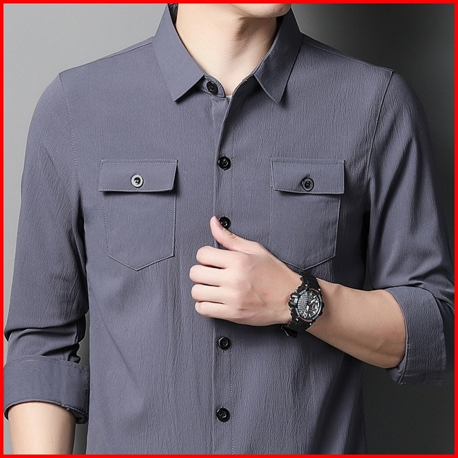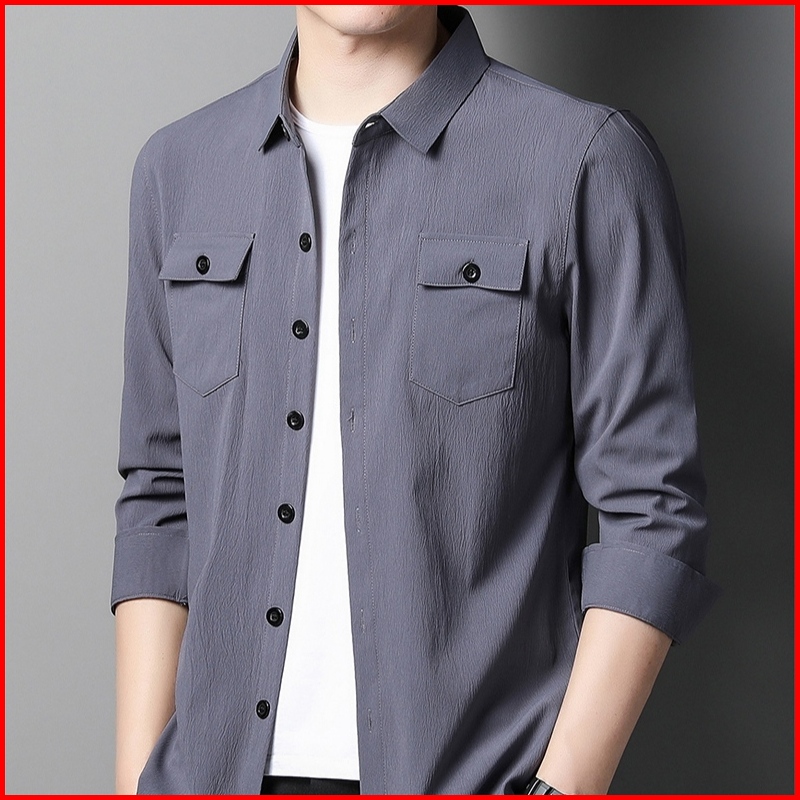 Zafos.id - Kemeja Linen Pria Lengan Panjang Dewasa Slimfit Distro Cowok Motif Polos