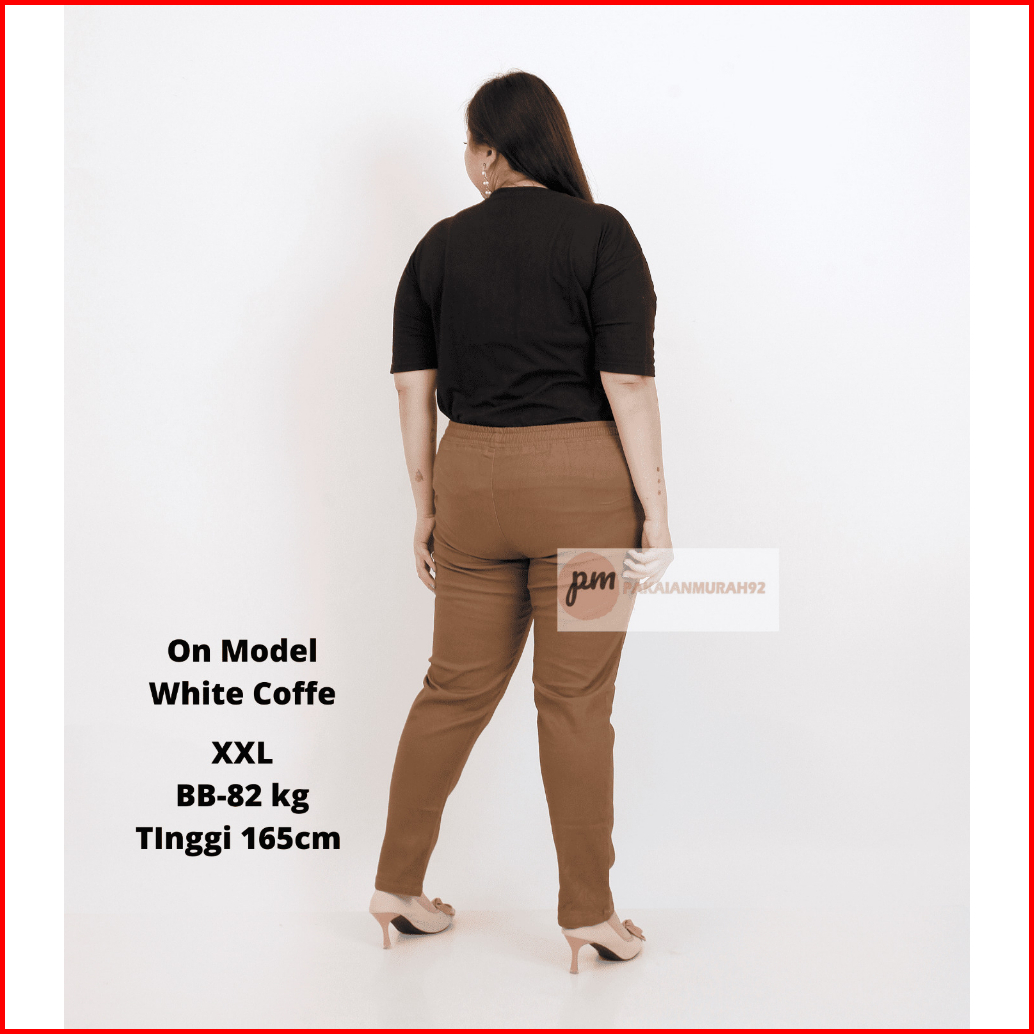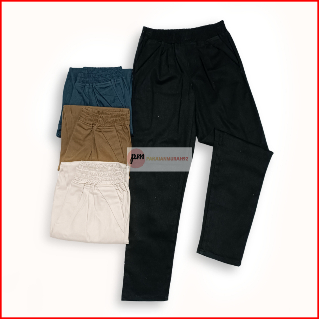Celana Kerja Pinggang Full Karet Wanita Celana Katun Twill Stretch Wanita Celana Big Size Wanita Ukuran All Size-xxxxl B