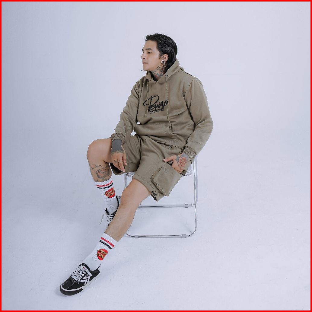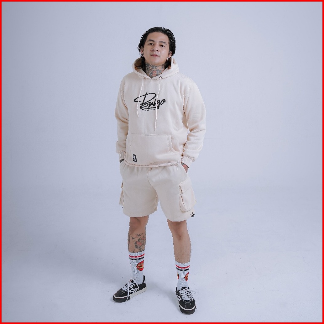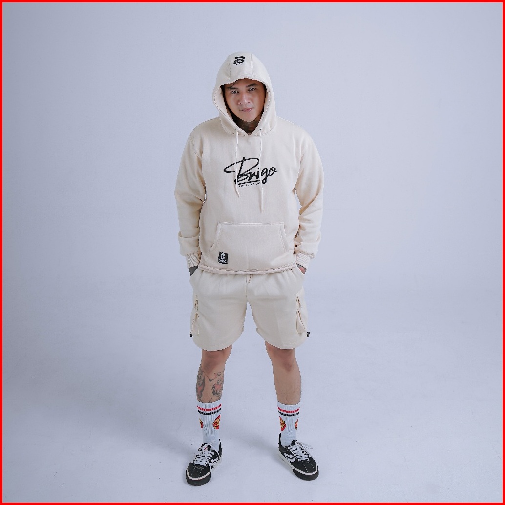 Brigo One Set Jumper Hoodie Art. Bordir Timbul 3d Dan Celana Cargo Pendek Ii Setelan Sweater Hoodie Celana Cargo Santai